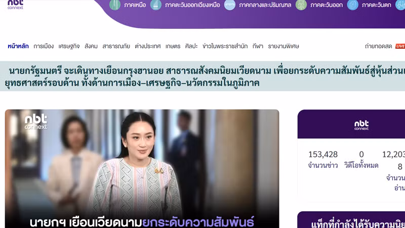 Kênh NBT có bài nhận định về chuyến thăm Việt Nam của Thủ tướng Thái Lan Paetongtarn Shinawatra khi cho rằng, mặc dù không chung đường biên giới với Thái Lan, nhưng Việt Nam được coi là một trong những nước ASEAN láng giềng rất gần gũi với Thái Lan. Chuyến thăm cũng để tái khẳng định vai trò quan trọng của Thái Lan trong khu vực và lòng tin chiến lược giữa hai nước.