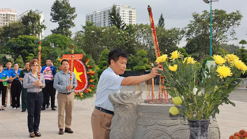 Tại Nghĩa trang liệt sĩ Thành phố Hồ Chí Minh, trong không khí trang nghiêm, thành kính, các đại biểu đã đến đặt vòng hoa, dâng hương và dành phút mặc niệm tri ân tưởng nhớ các anh hùng liệt sĩ đã cống hiến tuổi thanh xuân, chiến đấu và hy sinh vì sự nghiệp đấu tranh giải phóng dân tộc, thống nhất đất nước.