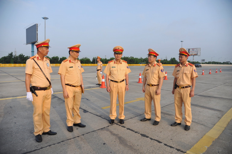 Trung tướng Vũ Đỗ Anh Dũng chỉ đạo lực lượng CSGT triển khai nhiệm vụ bảo đảm TTATGT trên tuyến cao tốc Hà Nội - Hải Phòng.