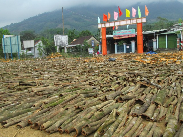 “Họ mua nhiều lắm nên mình về các xã vùng sâu để mua từ bà con rồi chuyển ra thị trấn bán. Từ đầu tháng ba đến giờ tôi thu mua được hơn 60 tấn quế rồi đó”, chị Thy tươi cười cho biết.