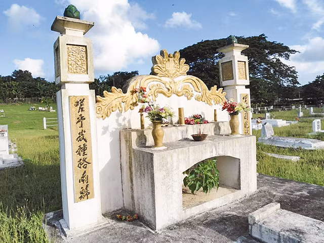 Tôi hỏi thăm người địa phương rồi tìm đến nghĩa trang thành phố. Trong cả một vùng cỏ xanh mướt rộng lớn có một khu vực được quây lại riêng biệt bằng hàng rào ống kẽm, sạch sẽ ngăn nắp, thấp thoáng những mái ngói lăng mộ như ở Việt Nam. Tôi cực kỳ xúc động khi đọc thấy những tên người Việt Nam trên những bia mộ. Năm sinh của nhiều người từ mãi cuối thế kỷ 19, đến nay đã hơn một trăm hai mươi năm. Có những người được Nhà nước ta công nhận là liệt sĩ vì đấu tranh ủng hộ cho nước Việt Nam độc lập từ Pháp. Có bia mộ của những người phu dũng cảm đứng lên chống lại bọn chủ hà khắc và bị chính quyền thực dân xử tử. Nhưng ấn tượng nhất với tôi lại là hai câu đối chữ Hán viết trên hai cây cột xây theo lối ở cổng đình làng Bắc Bộ: