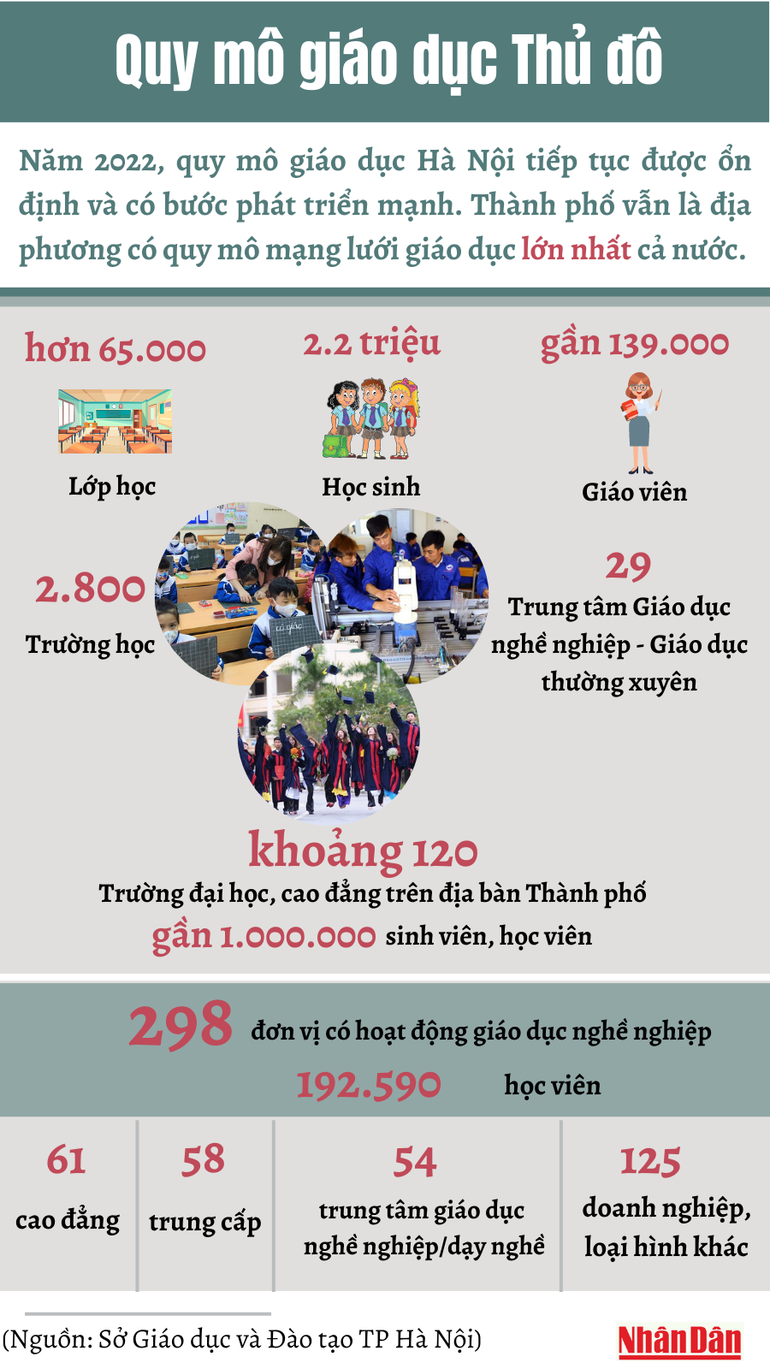Hà Nội là địa phương có quy mô mạng lưới giáo dục lớn nhất cả nước với hơn 2,2 triệu học sinh, gần 140 nghìn giáo viên.