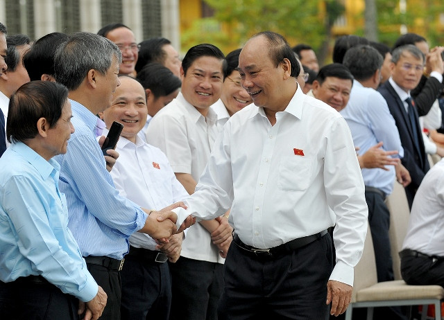 Thủ tướng Chính phủ Nguyễn Xuân Phúc với các đại biểu tại buổi lễ.