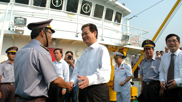 Thủ tướng Nguyễn Tấn Dũng dự lễ và thăm lực lượng Kiểm ngư Việt Nam trong buổi lễ ra mắt tại Quân cảng Vùng 3 Hải quân.