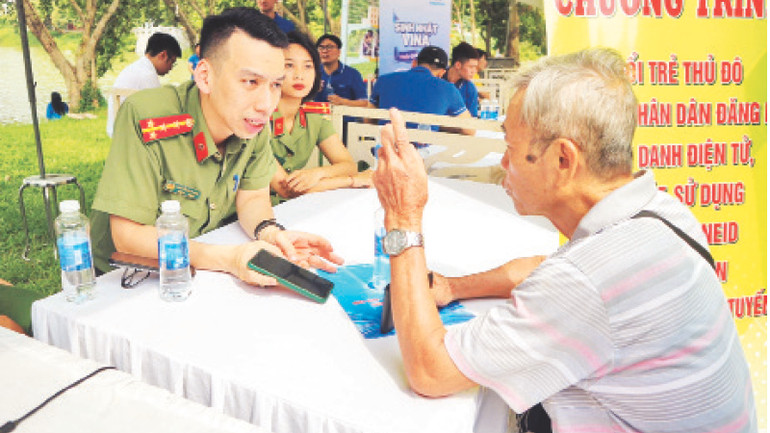 Cùng với đó, các đoàn viên thanh niên triển khai các hoạt động hỗ trợ đăng ký cấp căn cước công dân, hộ chiếu; kích hoạt định danh điện tử; cài đặt, sử dụng ứng dụng VneID. (Ảnh Thành Trung)