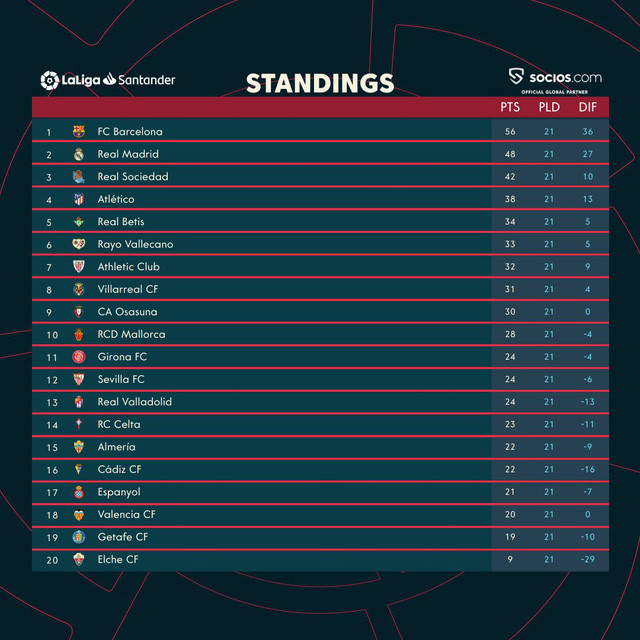 Thắng 4-0 trước Elche, Real Madrid củng cố vị trí thứ hai trên Bảng xếp hạng, hơn 6 điểm so với đội xếp thứ 3 Real Sociedad và thu hẹp cách biệt với Barcelona xuống còn 8 điểm.