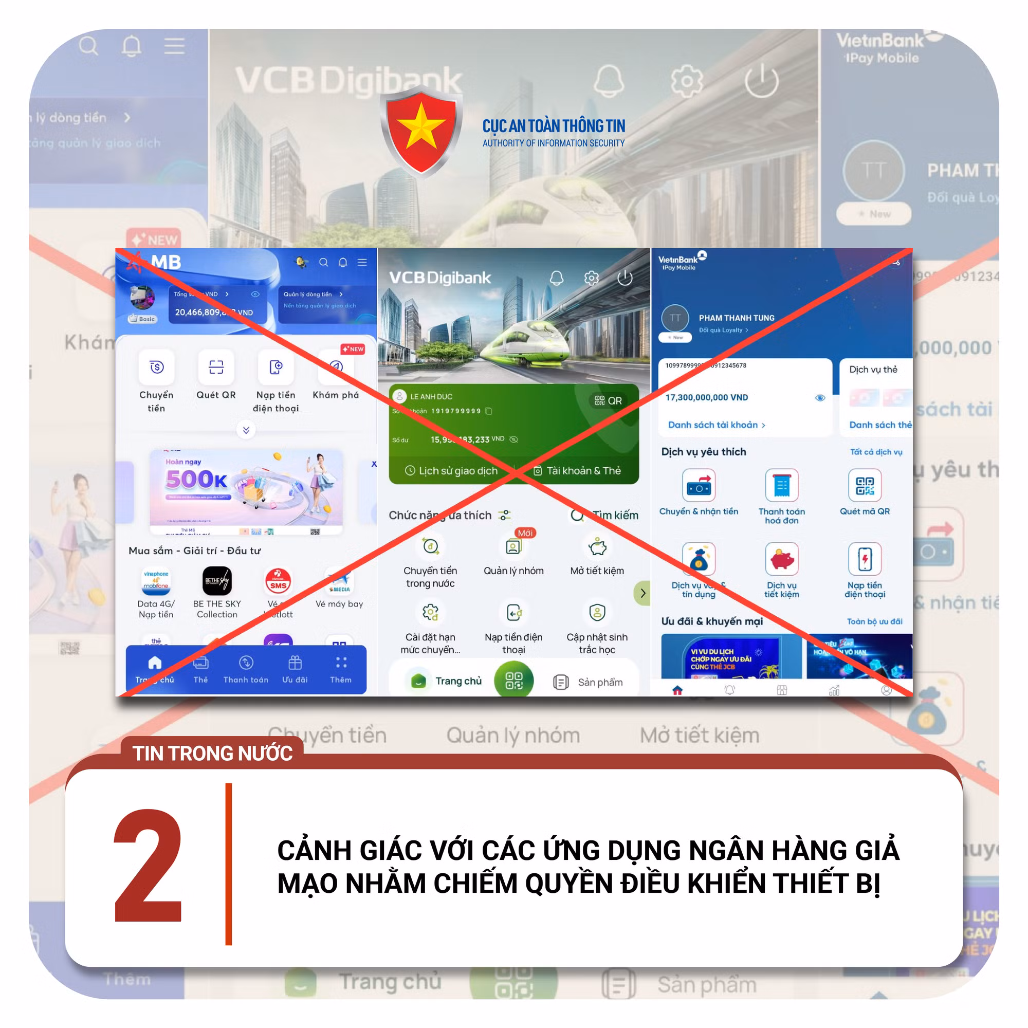 CẢNH GIÁC VỚI CÁC ỨNG DỤNG NGÂN HÀNG GIẢ MẠO NHẰM CHIẾM QUYỀN ĐIỀU KHIỂN THIẾT BỊ