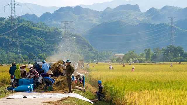 Trong vụ gặt, bà con dân tộc Thái, Mông ở đây kết hợp giữa máy móc hiện đại và dụng cụ thô sơ để cắt, tuốt lúa, đóng bao và vận chuyển… Hàng nghìn người dân làm hăng say trên cánh đồng lúa chín vàng bao la đã tạo nên bức tranh lao động đẹp và ý nghĩa.