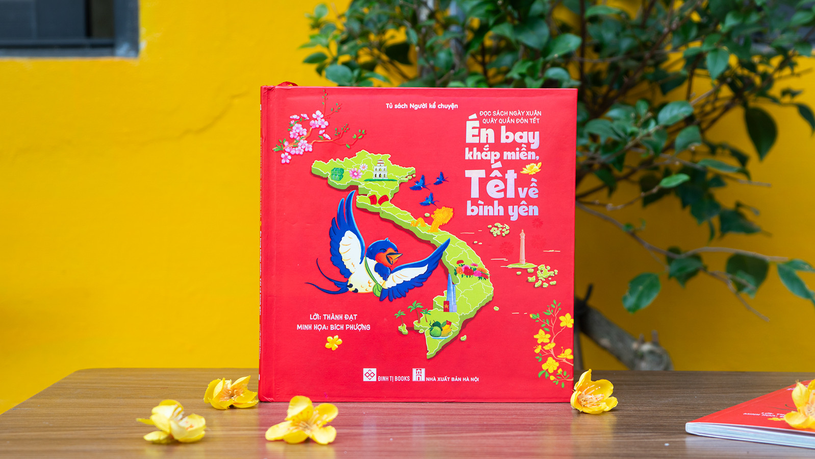 Đinh Tị là một trong số các nhà sách thường xuyên làm sách Tết dành cho thiếu nhi. Năm nay, Đinh Tị giới thiệu đến bạn đọc nhỏ tuổi bộ sách “Én bay khắp miền - Tết về bình yên” (Nằm trong bộ sách “Đọc sách ngày xuân - Quây quần đón Tết") của tác giả Thành Đạt, do họa sĩ Bích Phượng vẽ minh họa.