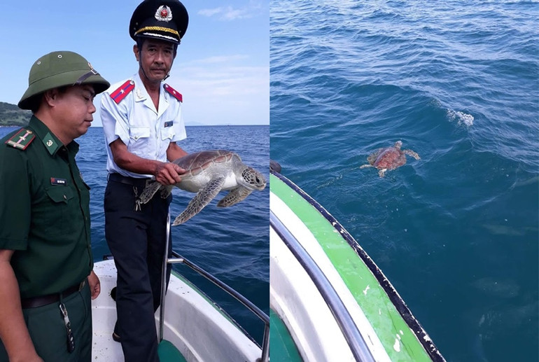 Rùa biển bị nuôi nhốt tại chùa Linh Ứng (Đà Nẵng) được thả về tự nhiên.