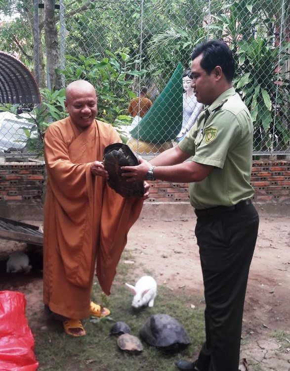 Cơ quan kiểm lâm tiếp nhận cá thể rùa tại chùa ở Sóc Trăng. (Ảnh: Kiểm lâm tỉnh Sóc Trăng).