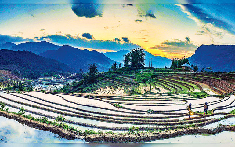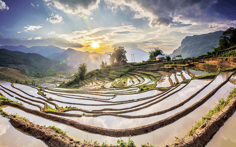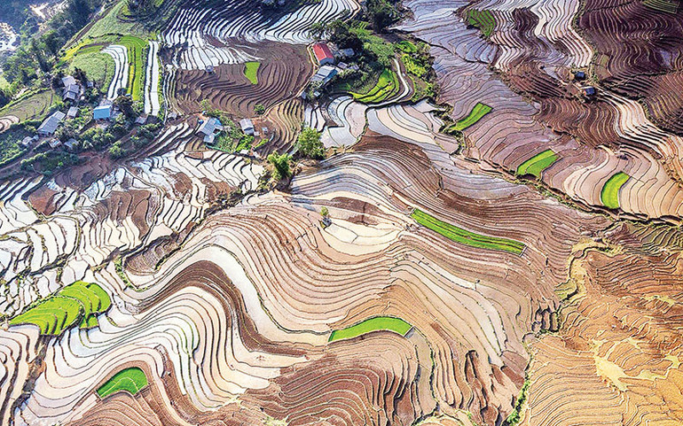 Mùa nước đổ hay còn gọi là mùa đổ ải là một mùa độc đáo bởi người dân vùng cao chỉ gieo trồng một vụ lúa trong năm. Đây cũng là dịp người nông dân nườm nượp ra đồng làm ruộng, đắp đập, ke bờ, rẫy cỏ, dẫn nước chuẩn bị gieo trồng cho vụ lúa duy nhất cho nên không khí tại đây vô cùng sôi động, khác hẳn những mùa vụ còn lại.