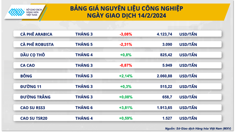 Khép lại phiên giao dịch ngày hôm qua, giá hai mặt hàng cà-phê giảm phiên thứ ba liên tiếp. Giá Arabica hợp đồng tháng 3 đánh mất 3,08% và giá Robusta hợp đồng tháng 5 thấp hơn 2,13% so với tham chiếu. Nguồn cung cải thiện tại các quốc gia sản xuất Arabica hàng đầu đã tạo sự an tâm hơn về khả năng cung ứng trên thị trường, từ đó gây sức ép lên giá.