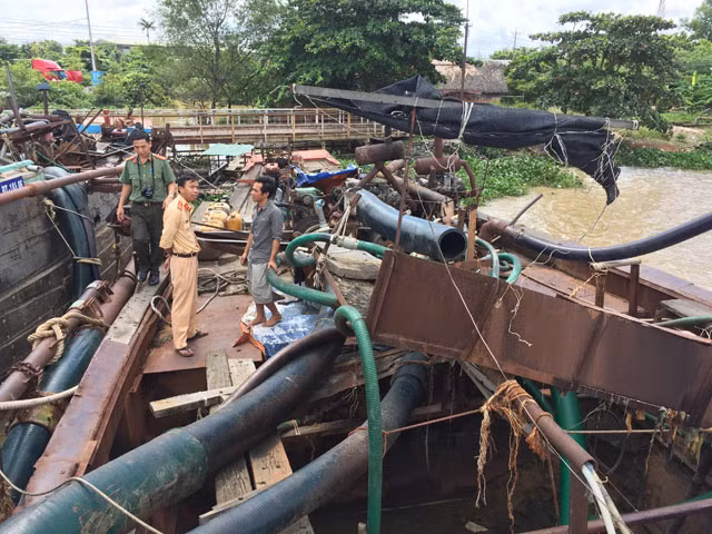 Công an tỉnh Đồng Nai bắt quả tang các đối tượng bơm hút cát trái phép trên sông Đồng Nai mang lên bán tại bãi kinh doanh vật liệu xây dựng ven bờ, đoạn qua địa bàn huyện Vĩnh Cửu.