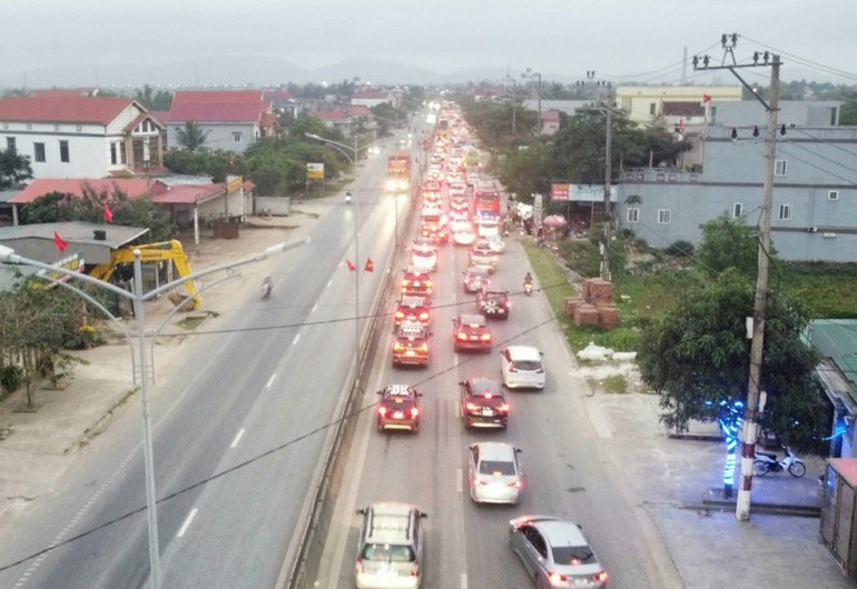 Tuy nhiên, đến địa bàn Quảng Bình, do tuyến cao tốc đang thi công, đường Hồ Chí Minh còn thiếu các dịch vụ dọc đường như cây xăng và trạm dừng nghỉ nên phần lớn người dân chọn tuyến Quốc lộ 1 để đi. Vì thế, lượng phương tiện trên tuyến đường này tăng rất cao.