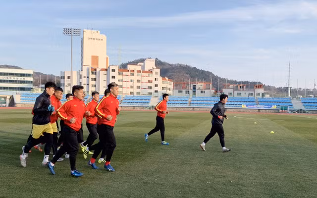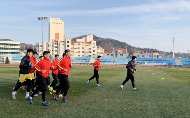 Ngay sau khi ổn định nơi đóng quân tại TP Tongyeong, chiều ngày hôm qua (14-12), toàn đội chính thức có buổi tập đầu tiên trên đất Hàn Quốc. Do lực lượng của U23 Việt Nam chủ yếu là các cầu thủ vừa trải qua lịch thi đấu dày đặc tại SEA Games 30 nên buổi tập chỉ diễn ra với khối lượng nhẹ nhàng, chủ yếu là các bài vận động nhằm giúp các cầu thủ hồi phục thể trạng cũng như lấy lại sự hứng khởi cần thiết. Trong đó, ba cầu thủ vẫn đang trong quá trình phục hồi sau chấn thương là Quang Hải, Đình Trọng và Trọng Hùng phải tập riêng dưới sự theo dõi sát sao của bác sĩ Choi Ju Young.