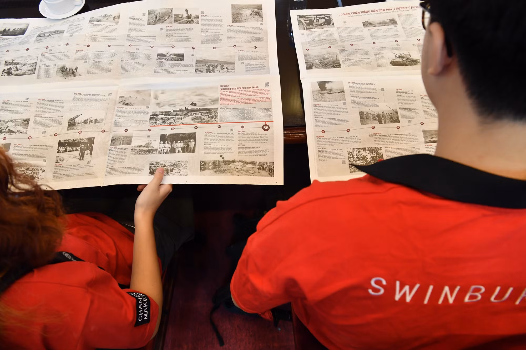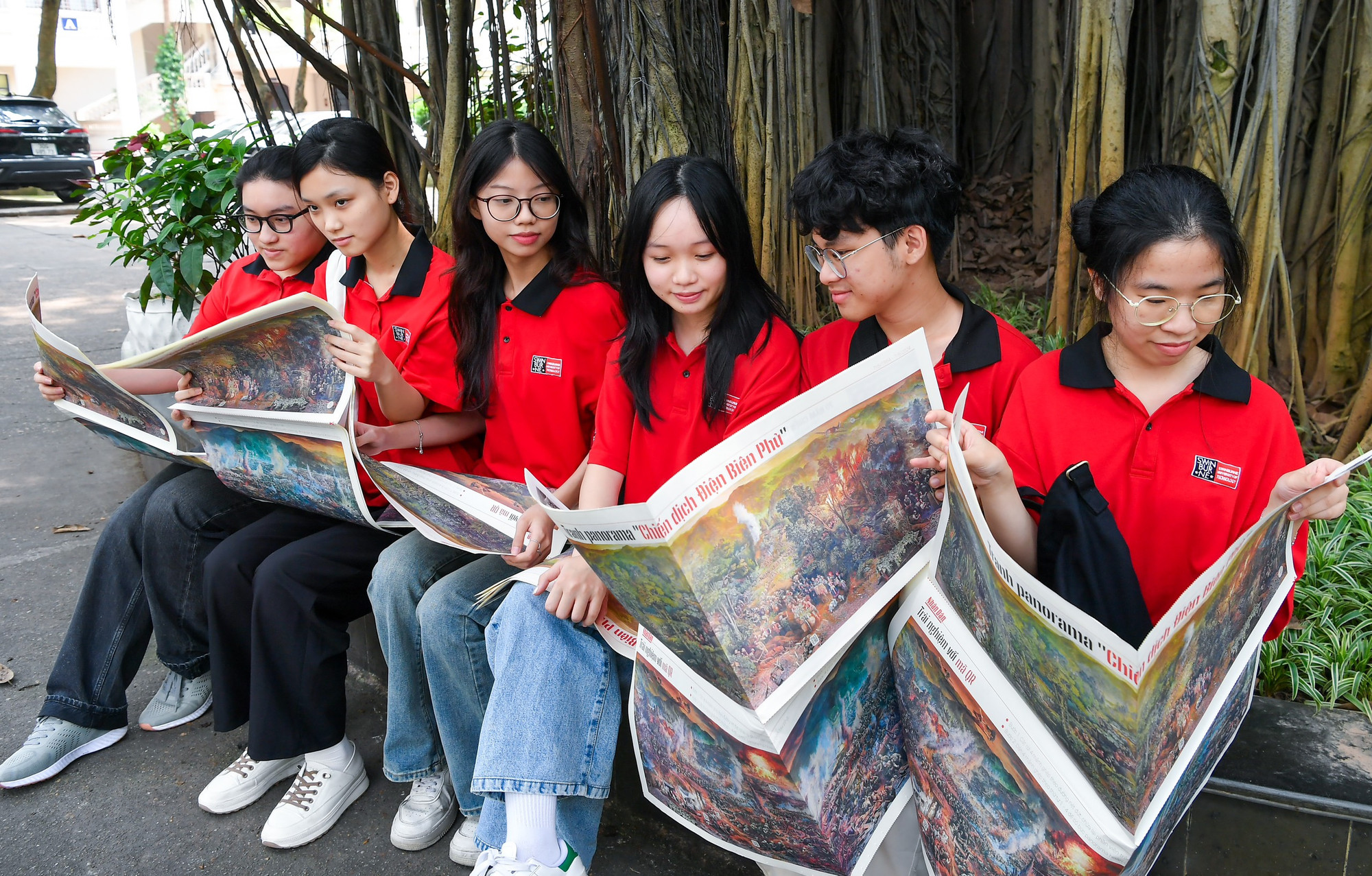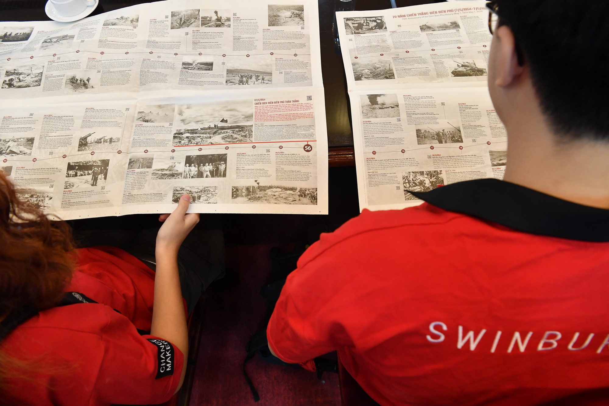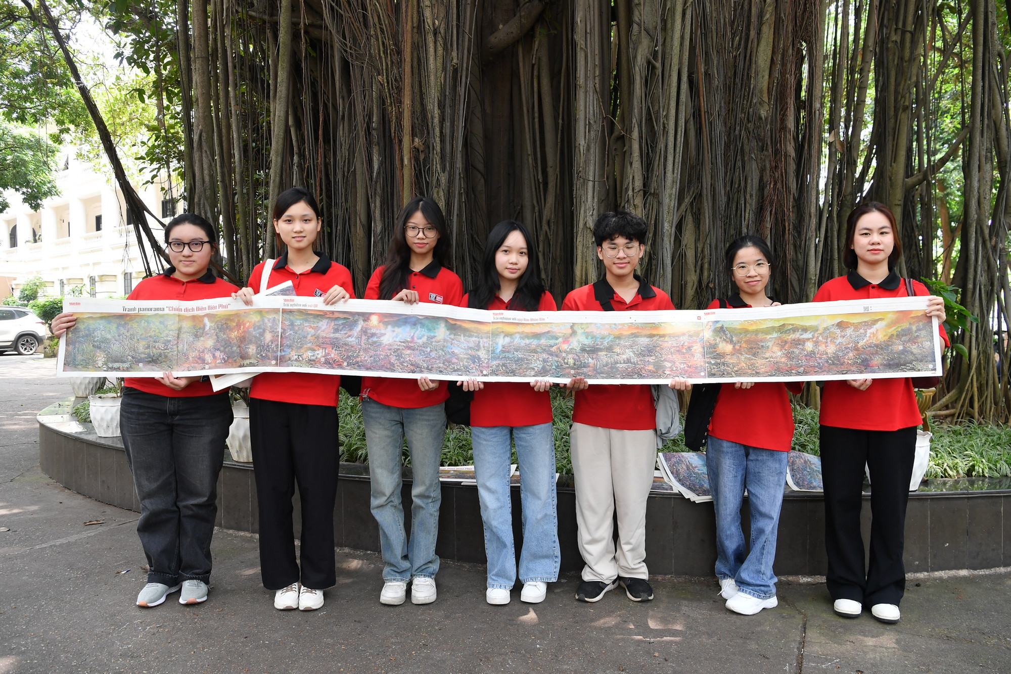 Một số hình ảnh sinh viên của Trung tâm liên kết đào tạo FPT Swinburne Vietnam tương tác với tranh panorama "Chiến dịch Điện Biên Phủ":