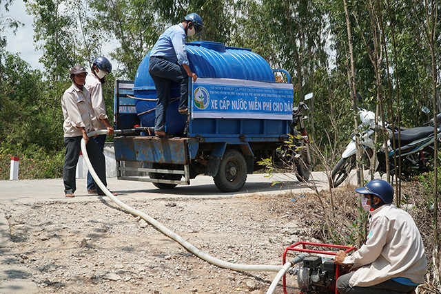 Trung tâm Nước sạch và vệ sinh môi trường nông thôn Sóc Trăng cung cấp nước sạch miễn phí cho người dân vùng hạn mặn.