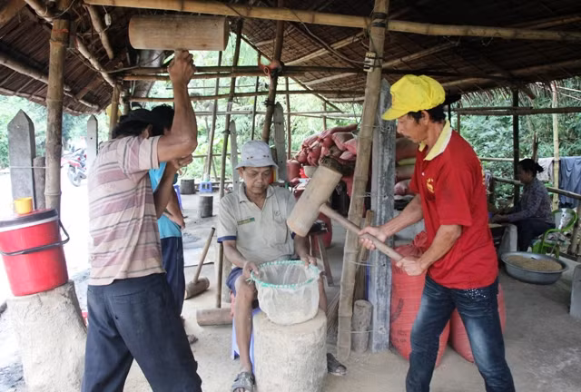 Âm thanh quen thuộc kết thúc vụ mùa bội thu, mừng no ấm như báo hiệu sắp đến ngày lễ hội Oóc-om-bóc – đua ghe ngo lớn nhất trong năm của đồng bào dân tộc Khmer. Bao chàng trai, cô gái Khmer hớn hở, hăng say, bền bỉ quay nhịp cối, nhịp chày. Cốm dẹp đã vào mùa, xóm làng thoảng hương cốm mới.