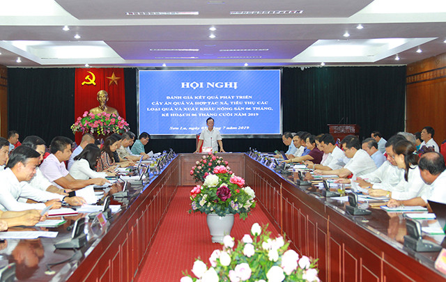 Báo cáo tại Hội nghị, Phó Chủ tịch UBND tỉnh Sơn La Nguyễn Quốc Khánh cho biết: Năm 2019, Ban Thường vụ Tỉnh ủy Sơn La đã tiếp tục xác định đẩy mạnh ứng dụng khoa học công nghệ vào sản xuất để phát triển lực lượng sản xuất; chuyển mạnh sang sản xuất hàng hóa, nâng cao hiệu quả trên một đơn vị diện tích đất canh tác; phát triển HTX nhằm hoàn thiện quan hệ sản xuất mới theo chuỗi giá trị, trong đó HTX đóng vai trò là cầu nối giữa người nông dân và doanh nghiệp, hình thành các chuỗi liên kết từ sản xuất đến chế biến, tiêu thụ, xuất khẩu sản phẩm. Theo tổng hợp, 6 tháng đầu năm 2019, giá trị xuất khẩu toàn tỉnh đạt 81 triệu USD, trong đó giá trị nông sản xuất khẩu ước đạt trên 78 triệu USD (đạt 55,5% so với kế hoạch năm 2019) trong đó xuất khẩu được 16 loại sản phẩm, sang thị trường 15 nước (tăng ba nước). Dự kiến, những tháng cuối năm 2019 Sơn La sẽ xuất khẩu các sản phẩm nhãn, chanh leo, thanh long, bơ,… giá trị ước đạt 65 triệu USD, dự kiến sẽ vượt mức kế hoạch giá trị xuất khẩu 150 triệu USD đã đề ra trong năm 2019.