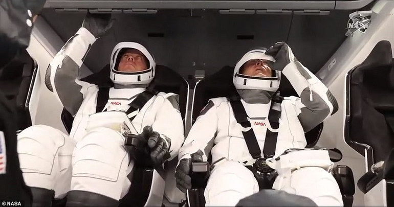 Các phi hành gia Bob Behnken, Doug Hurley trên tàu vũ trụ Crew Dragon của SpaceX. Ảnh: NASA.