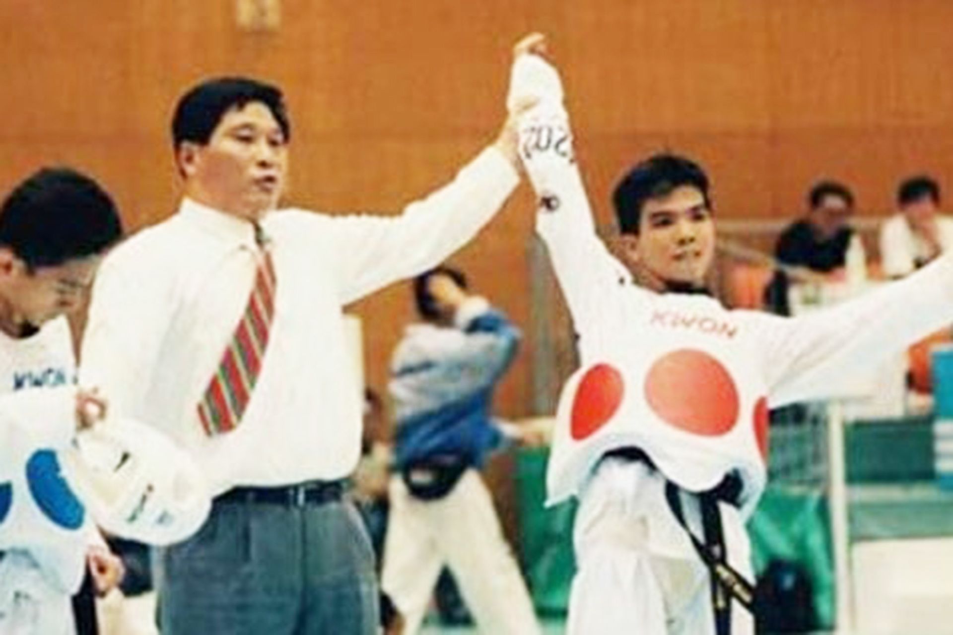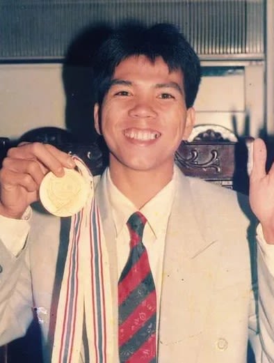 Võ sĩ Trần Quang Hạ trong bức ảnh đi vào lịch sử Thể thao Việt Nam khi giành Huy chương Vàng ASIAD 1994.