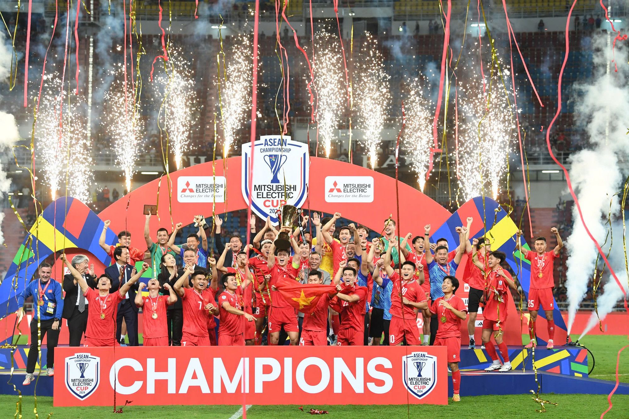 Đội tuyển Việt Nam nâng cao chiếc cúp vô địch ASEAN Cup 2024.