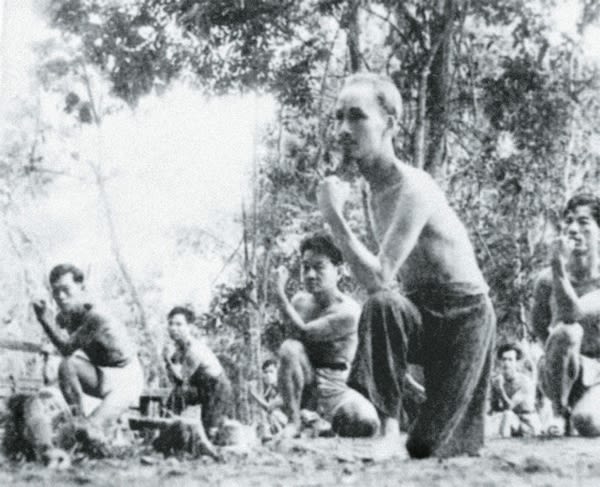 Bác Hồ tập võ cùng các chiến sĩ.