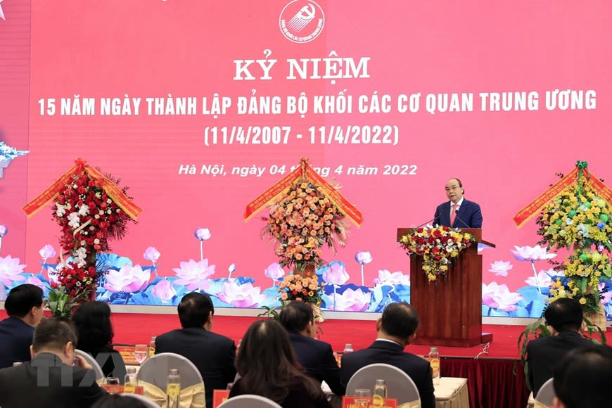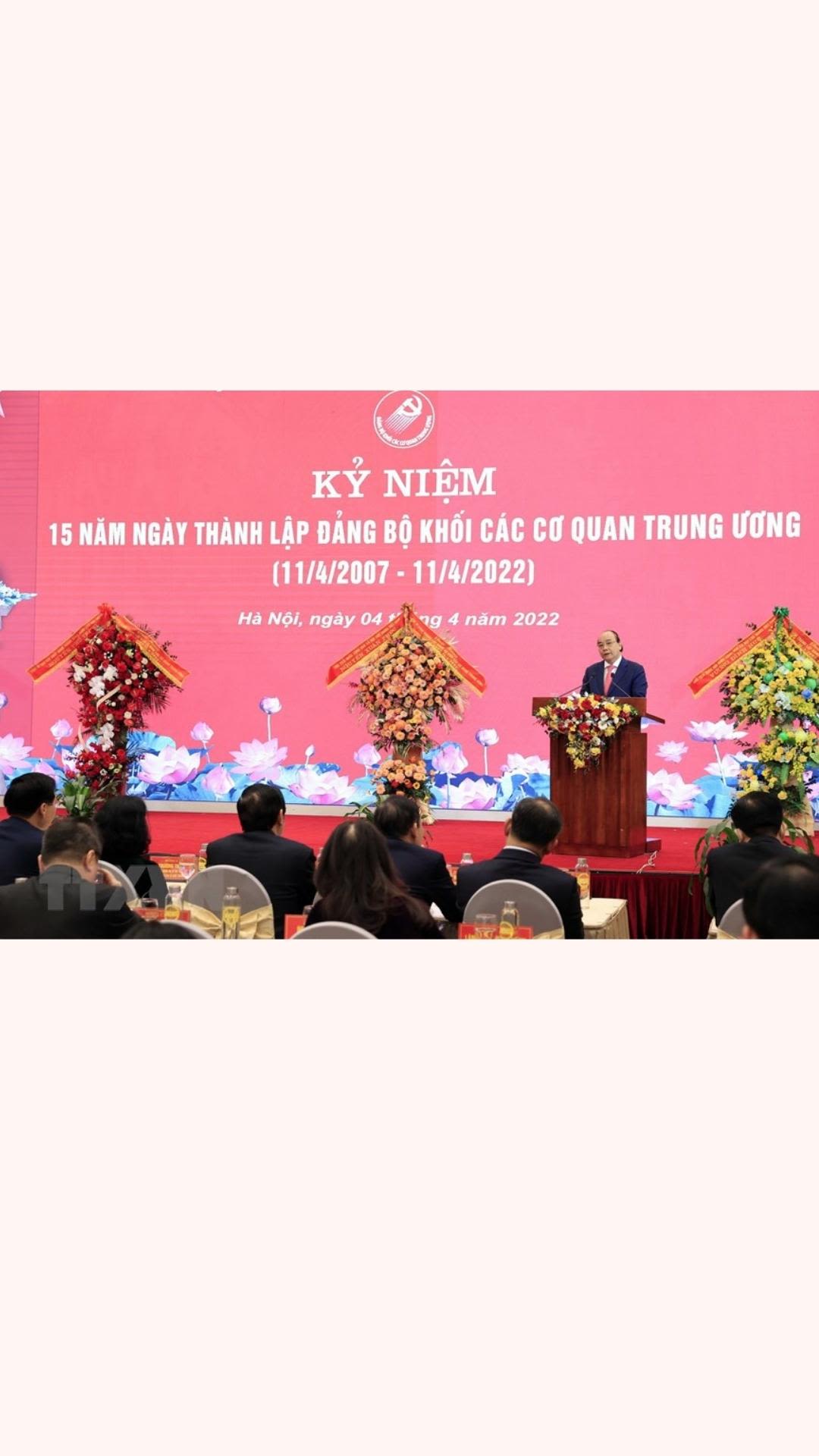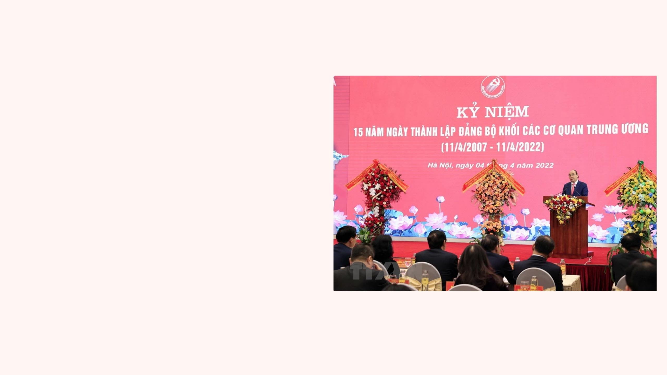 Ngày 4/4, Đảng bộ Khối các cơ quan Trung ương tổ chức Lễ kỷ niệm 15 năm Ngày thành lập Đảng bộ Khối các cơ quan Trung ương (11/4/2007-11/4/2022). Chủ tịch nước Nguyễn Xuân Phúc dự và phát biểu ý kiến chỉ đạo. Báo Nhân Dân xin giới thiệu toàn văn bài phát biểu của Chủ tịch nước Nguyễn Xuân Phúc.