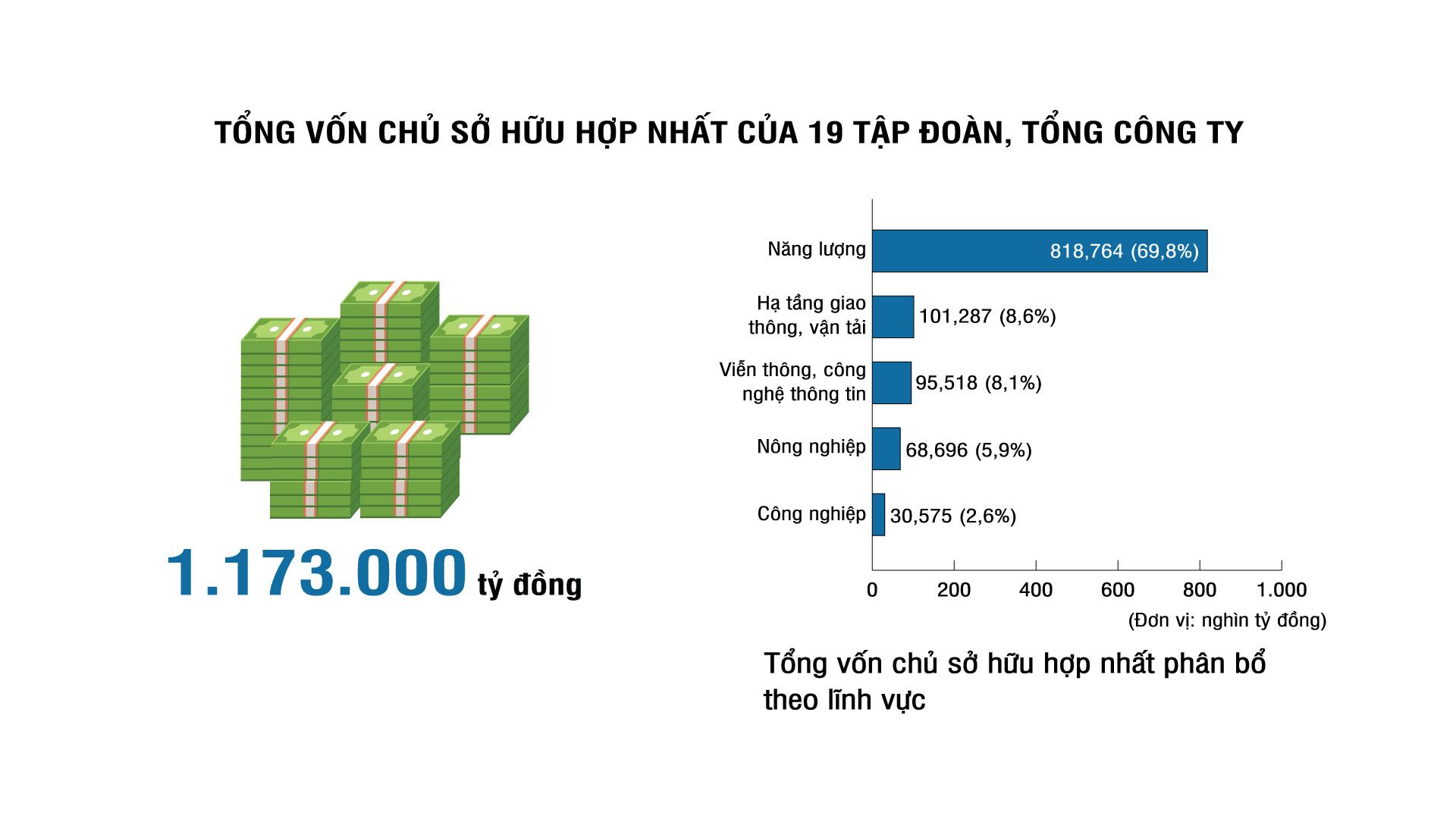 Tổng vốn chủ sở hữu và tài sản hợp nhất của 19 tập đoàn, tổng công ty tính đến 1/1/2023