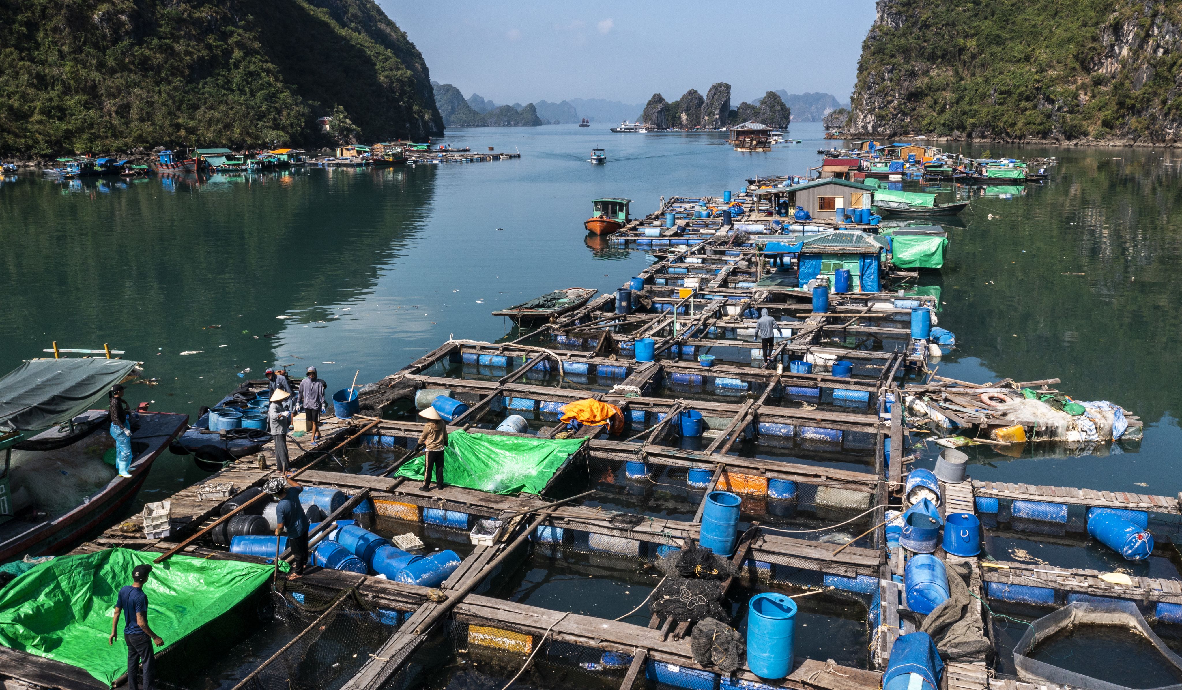Bè nuôi cá tại làng chài Cửa Vạn.