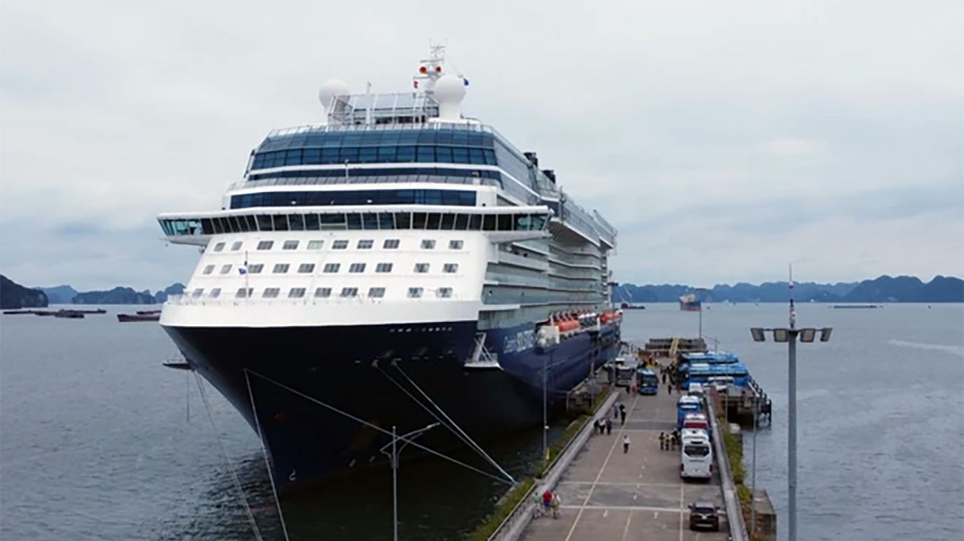 Ngày 13/11, siêu du thuyền Celebrity Solstice (quốc tịch Malta) đã cập Cảng tàu khách quốc tế Hạ Long, đem theo gần 2.700 du khách châu Âu, Mỹ. Ảnh: TTXVN