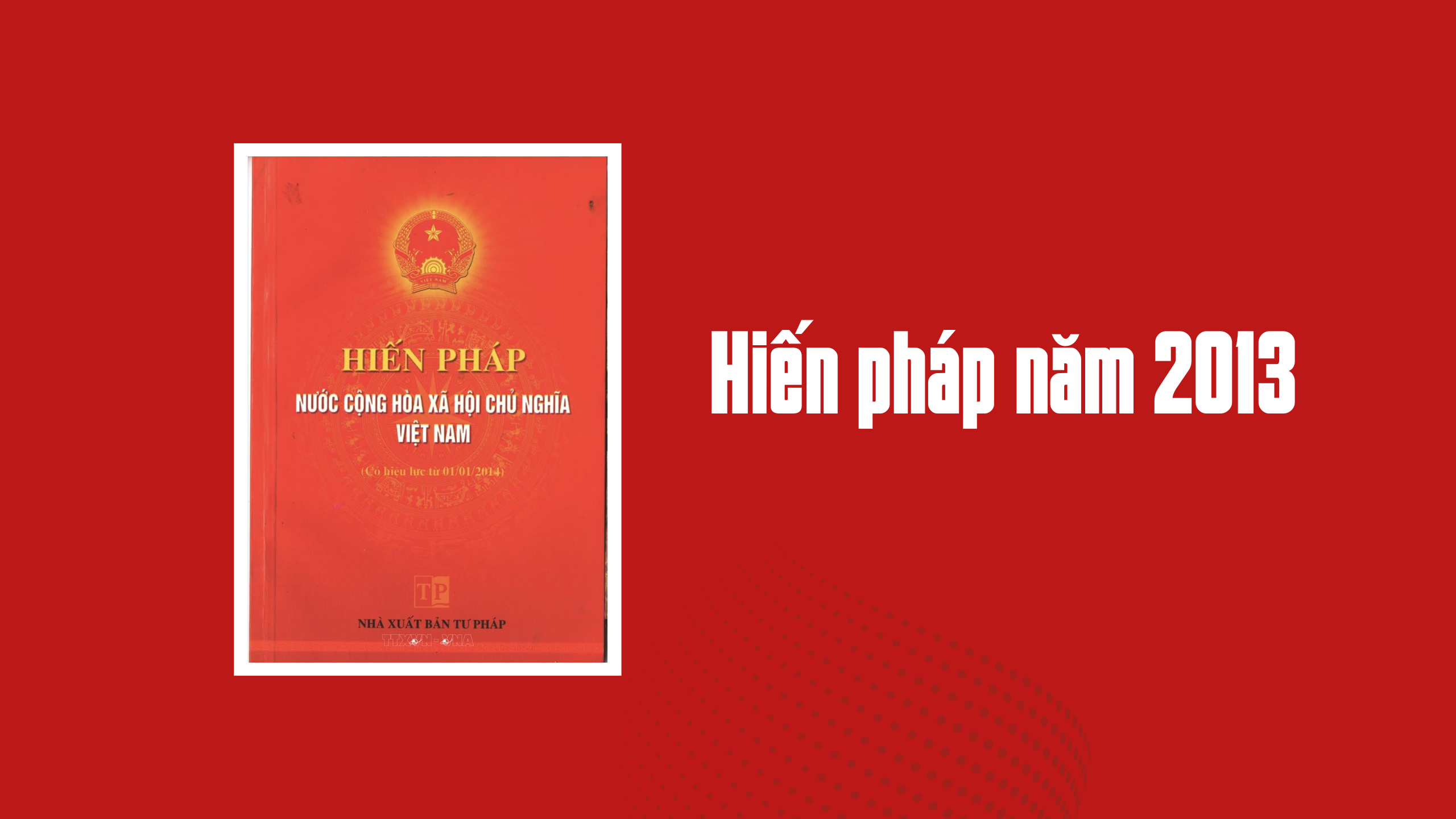 Hiến pháp năm 2013, được Quốc hội khóa XIII thông qua ngày 28/11/2013 và có hiệu lực từ ngày 1/1/2014, là bản Hiến pháp thứ năm trong lịch sử lập hiến của Việt Nam. Bản Hiến pháp này ra đời trong bối cảnh đất nước đã có hơn 25 năm thực hiện công cuộc Đổi mới, đạt nhiều thành tựu quan trọng về kinh tế, xã hội và hội nhập quốc tế.