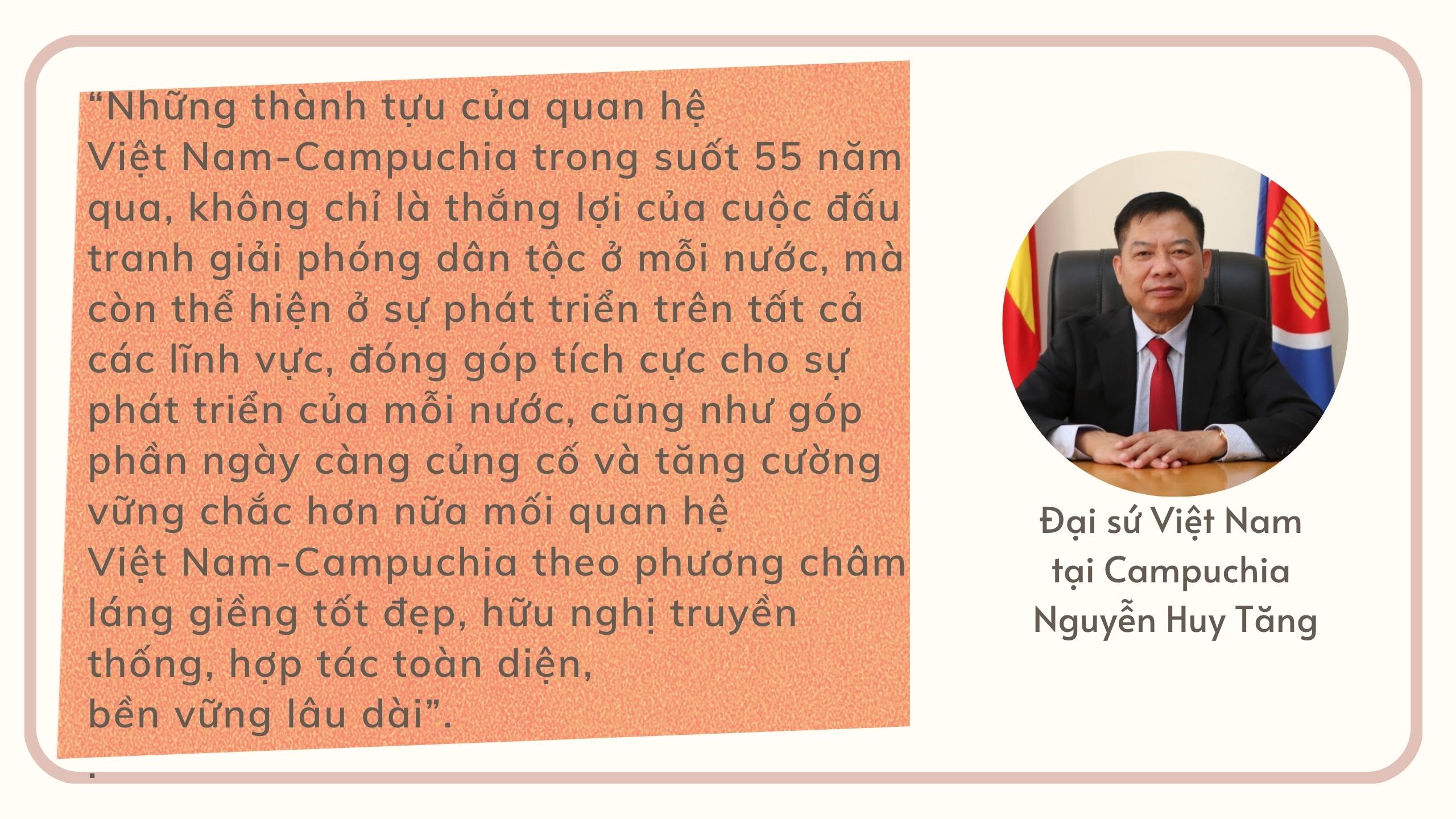 Trên chặng đường 55 năm vừa qua, tình đoàn kết, hữu nghị truyền thống và sự hợp tác toàn diện giữa Việt Nam và Campuchia không ngừng được củng cố và phát triển. Với phương châm láng giềng tốt đẹp, hữu nghị truyền thống, hợp tác toàn diện, bền vững lâu dài, với những định hướng và khuôn khổ hợp tác trong thời kỳ mới, cùng quyết tâm của lãnh đạo và nhân dân hai nước, quan hệ Việt Nam-Campuchia sẽ tiếp tục phát triển, vì sự phồn vinh của mỗi quốc gia, vì cuộc sống ấm no của nhân dân mỗi nước, đóng góp cho hòa bình, ổn định, hợp tác và phát triển trong khu vực và trên thế giới.