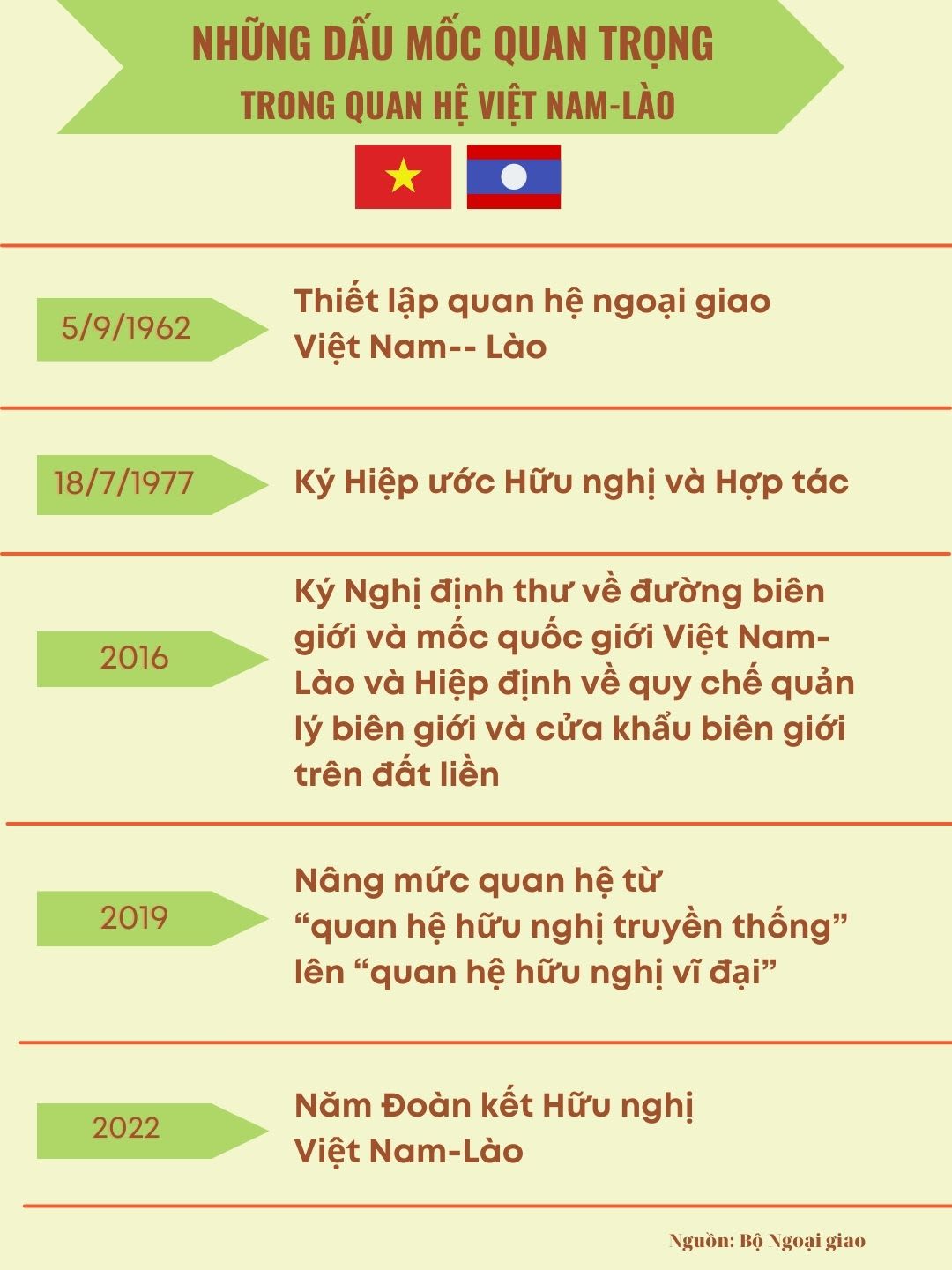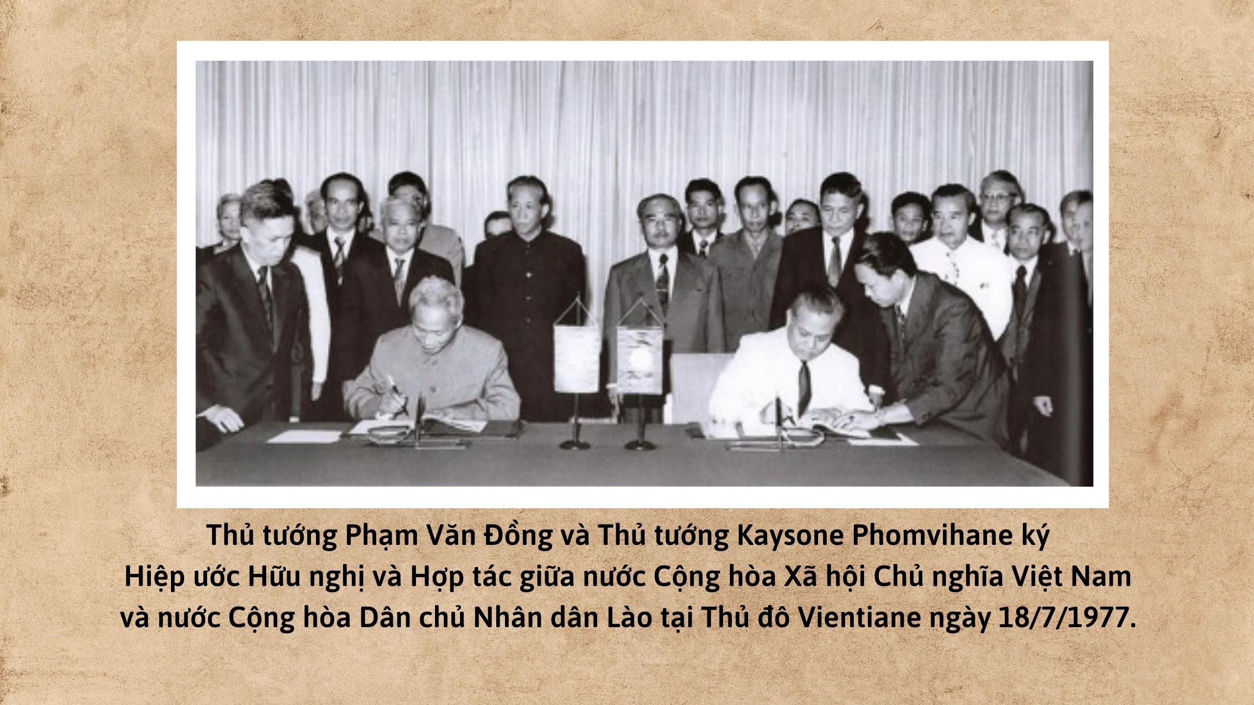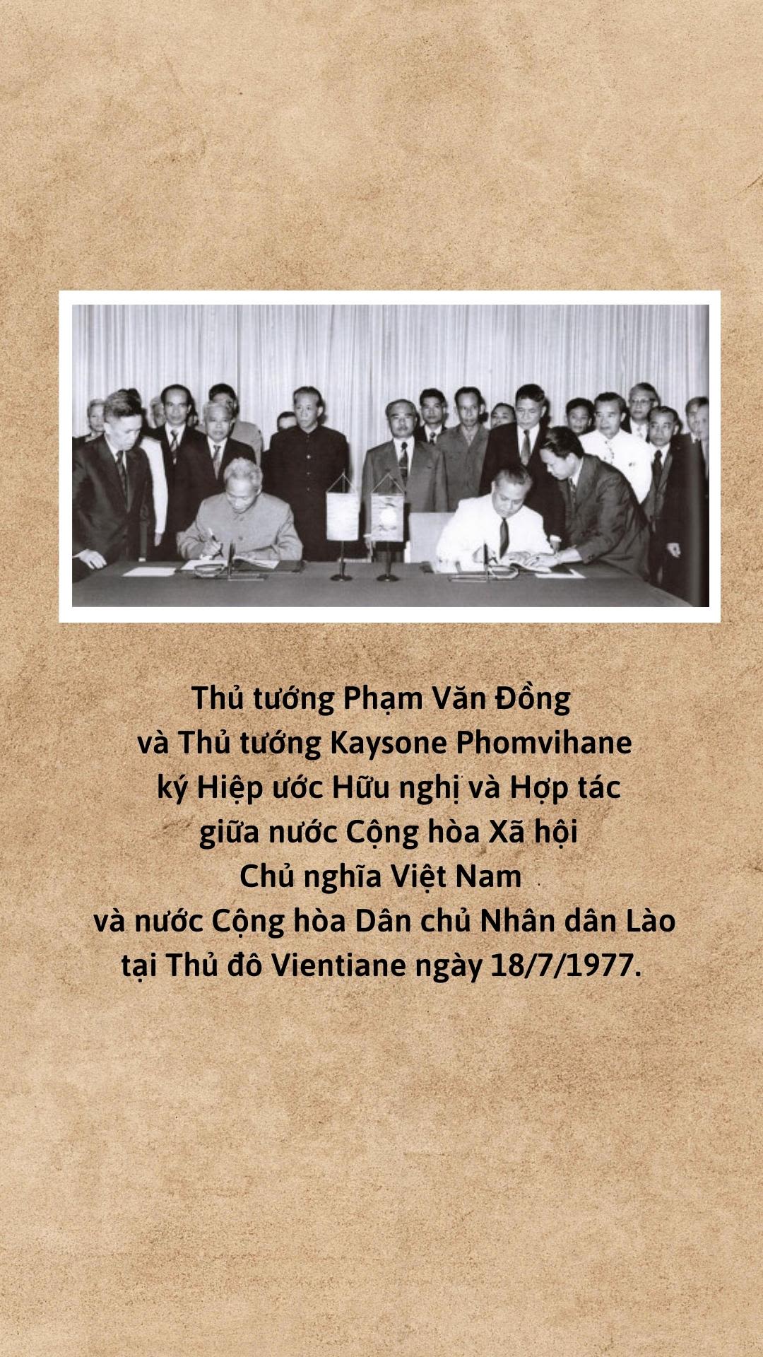 Vào ngày 5/9/1962, Việt Nam và Lào chính thức thiết lập quan hệ ngoại giao. Ðây là sự kiện lịch sử trọng đại, đánh dấu một trang mới trong quan hệ hai nước, khẳng định sự gắn bó vận mệnh của hai dân tộc trong cuộc đấu tranh giải phóng dân tộc, thống nhất đất nước. Nhằm đưa quan hệ đôi bên phát triển toàn diện và đi vào chiều sâu, ngày 18/7/1977, Việt Nam-Lào đã ký Hiệp ước Hữu nghị và Hợp tác. Hiệp ước đã trở thành cơ sở chính trị, pháp lý quan trọng, giúp Việt Nam và Lào không ngừng củng cố và phát triển quan hệ song phương, đồng thời xây dựng và bảo vệ Tổ quốc của mỗi nước.