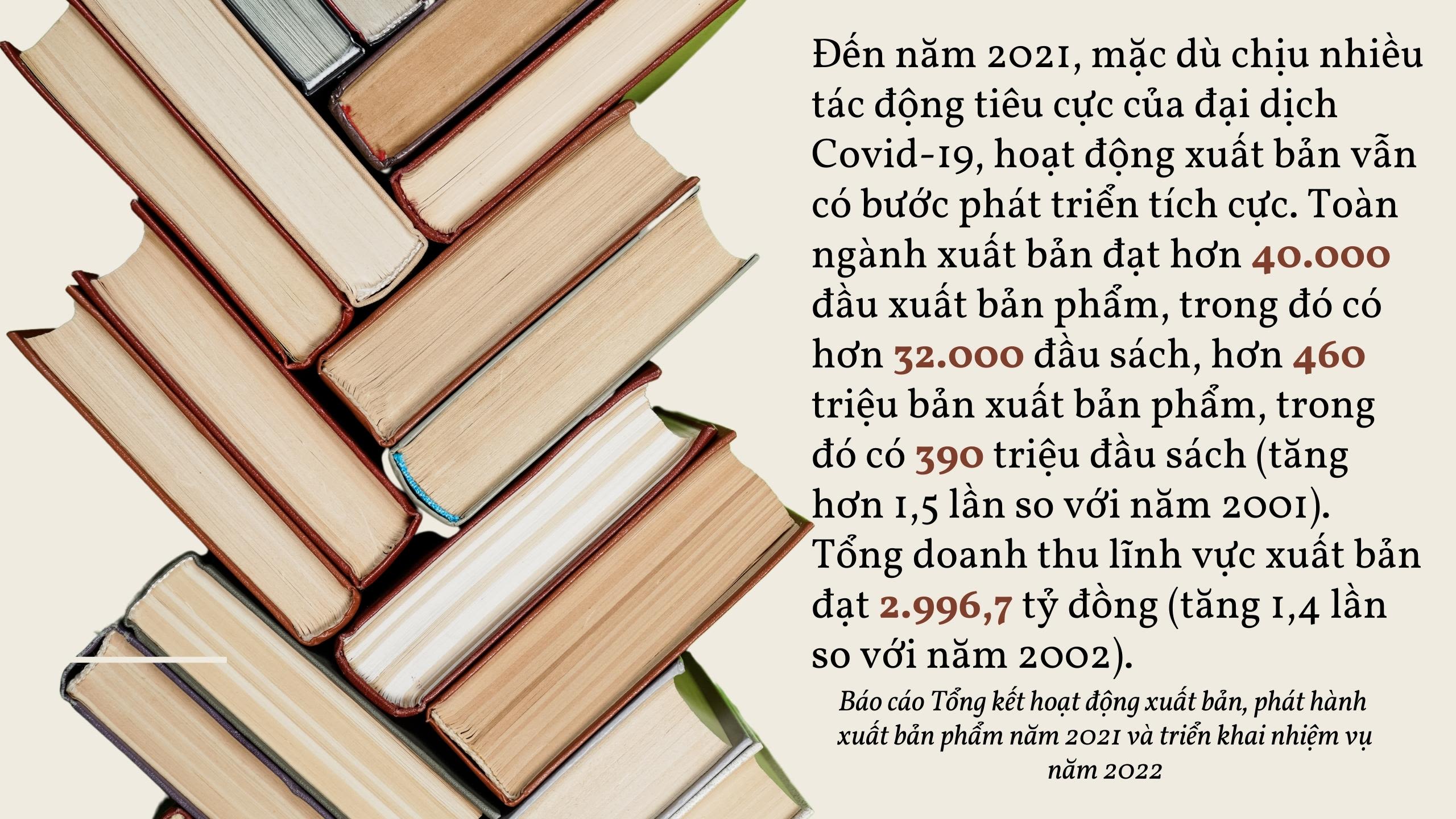 Từ quốc gia thiếu sách vào những năm 80-90 với năng lực sản xuất vào khoảng trên 2.000 đầu sách/năm, khoảng 50 triệu bản sách, đến năm 2004 cả nước đã xuất bản được trên 18 nghìn tên sách, 240 triệu bản sách, gấp 9 lần về tên sách, 5 lần về bản sách, đưa mức bình quân sách/người từ 0,8 bản lên 3,1 bản.