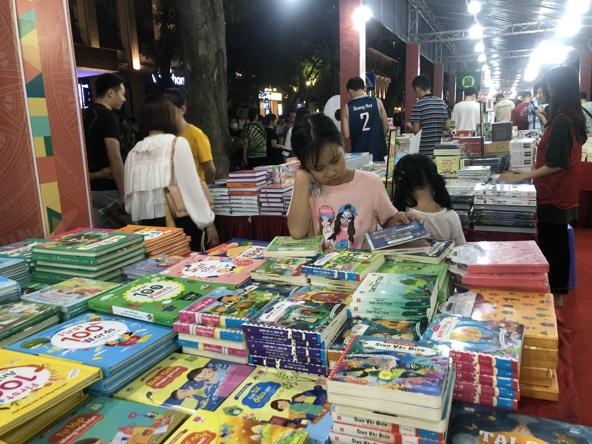 Em bé say sưa đọc sách tại Hội sách Hà Nội 2022.