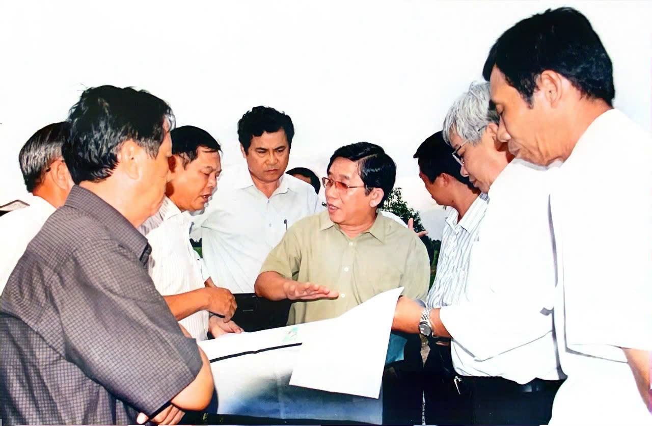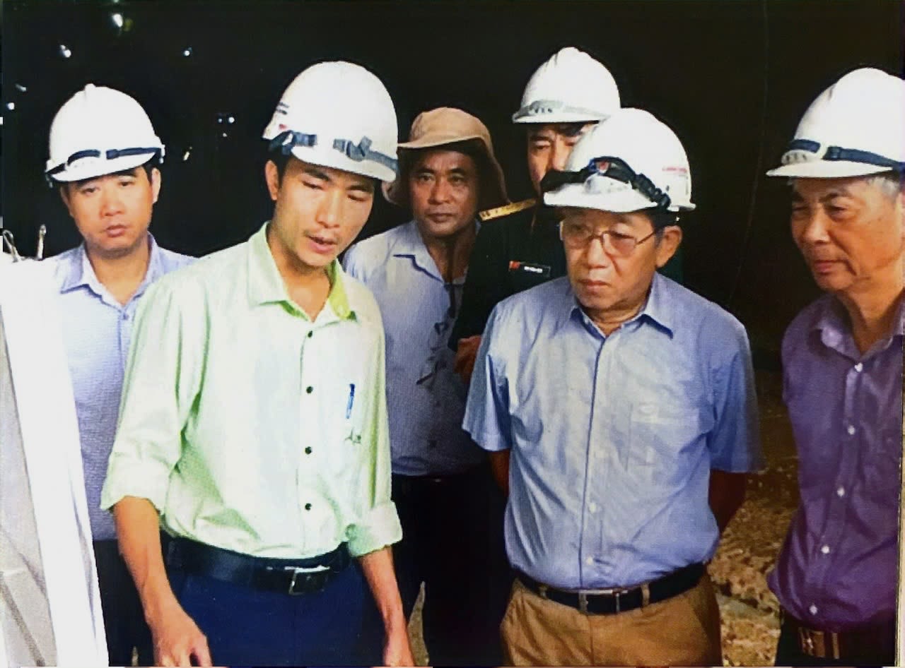 Nghe báo cáo tại hiện trường đường Nam Đông-Túy Loan của đội ngũ tư vấn (tháng 4/2005).