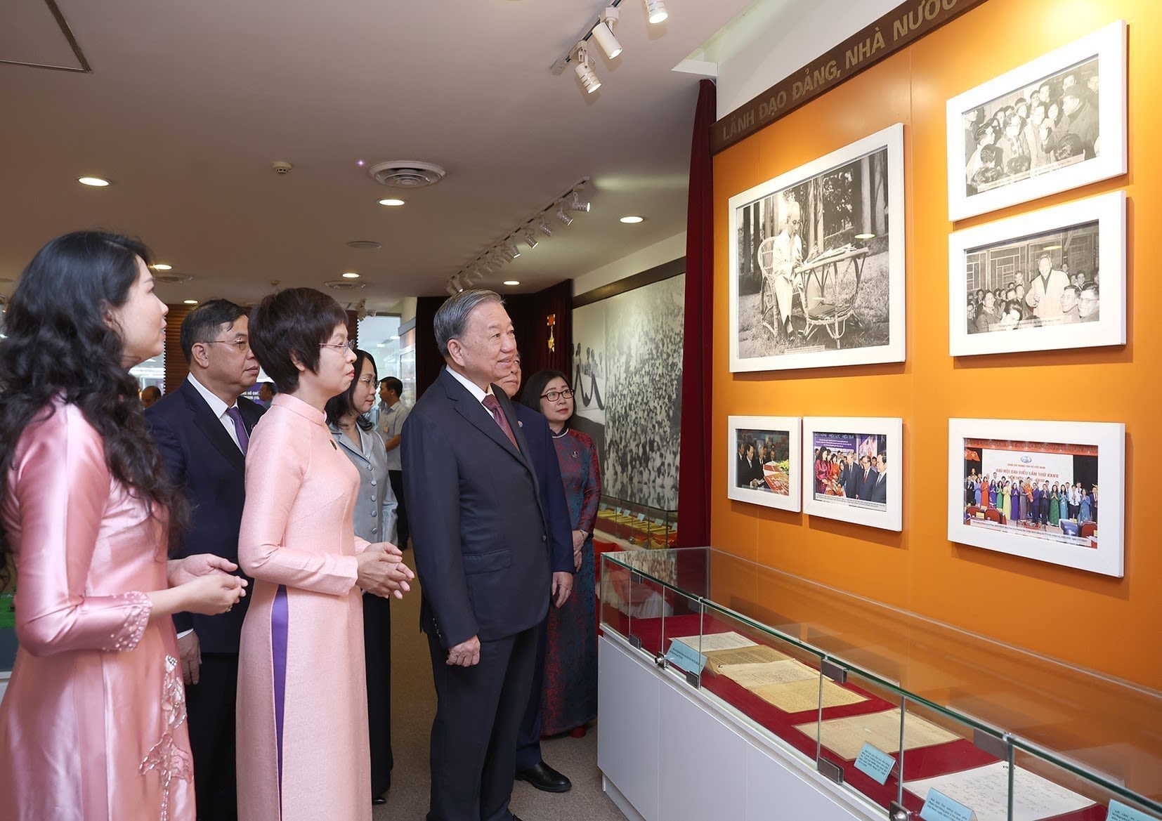 越共中央总书记苏林参观越南通讯社80年传统图片资料展示厅。(图片来源:越通社)