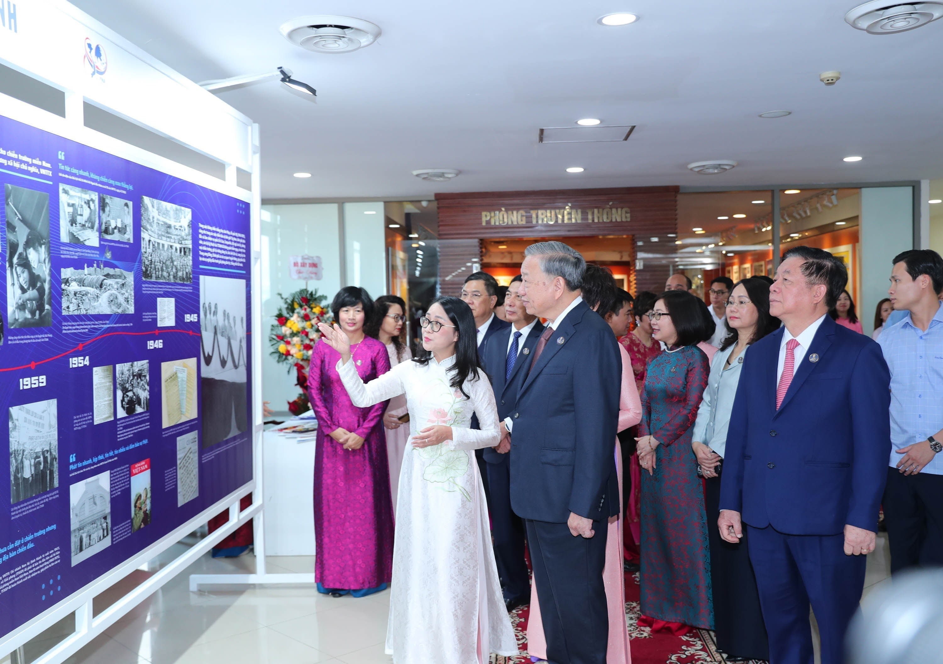 苏林总书记参观越南通讯社传统陈列室。(图片来源:越通社)