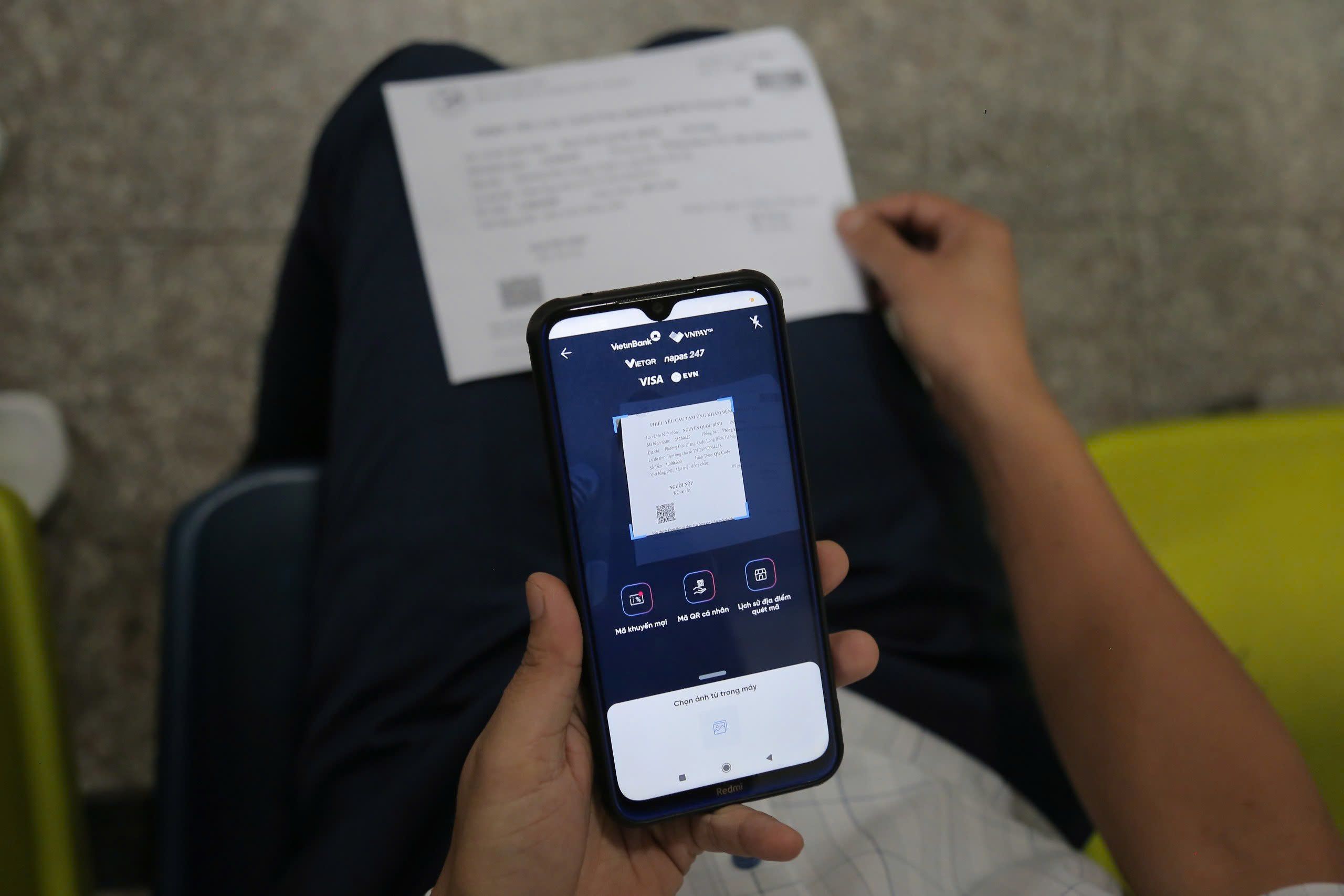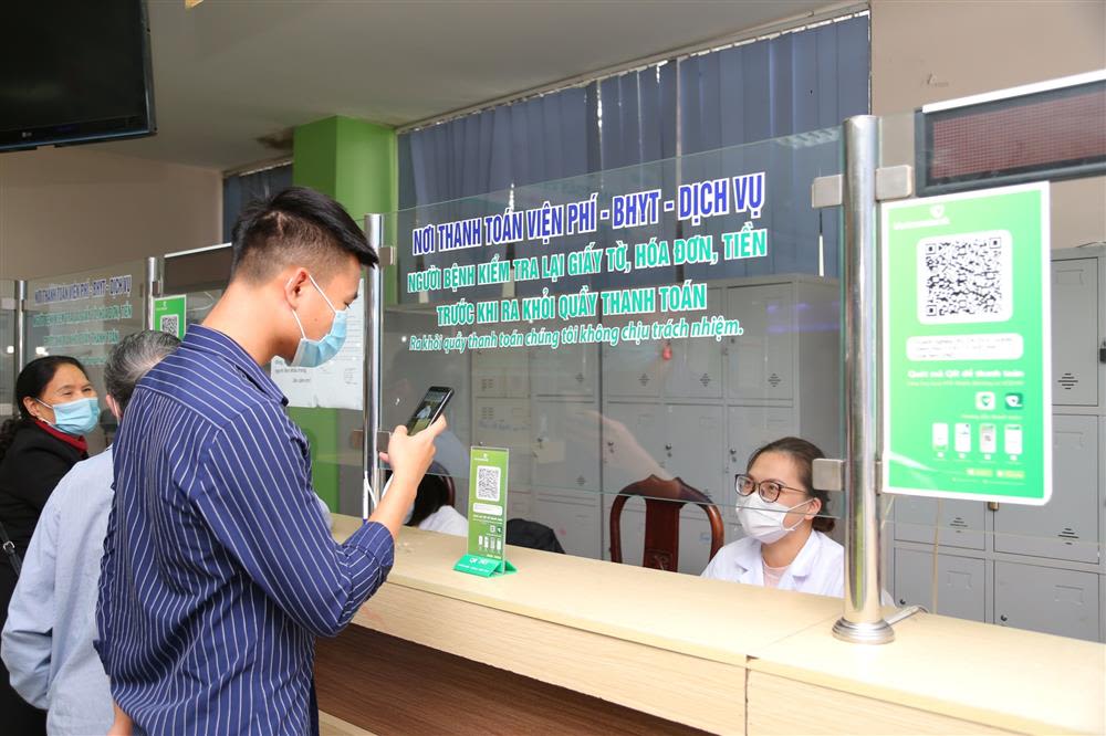 Bệnh nhân thanh toán qua hình thức quét mã QR tại Bệnh viện đa khoa Đức Giang (Hà Nội).