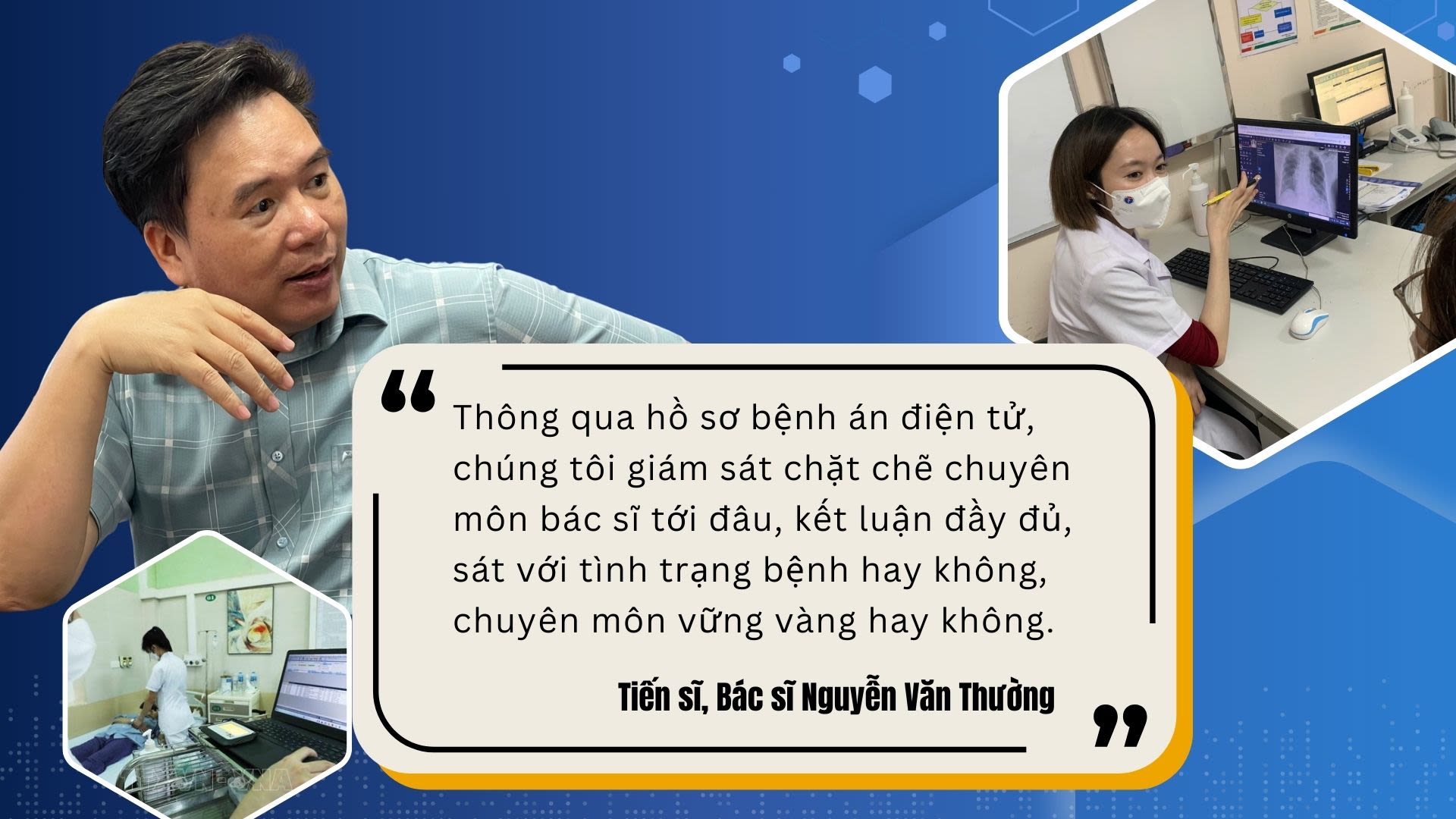 Giám đốc Bệnh viện đa khoa Đức Giang chia sẻ, một mục tiêu quan trọng của chuyển đổi số trong quản trị bệnh viện, chính là việc giám sát được chất lượng khám chữa bệnh. “Thông qua hồ sơ bệnh án điện tử, chúng tôi giám sát chặt chẽ chuyên môn bác sĩ tới đâu, kết luận đầy đủ, sát với tình trạng bệnh hay không, chuyên môn vững vàng hay không”, ông Thường nói.