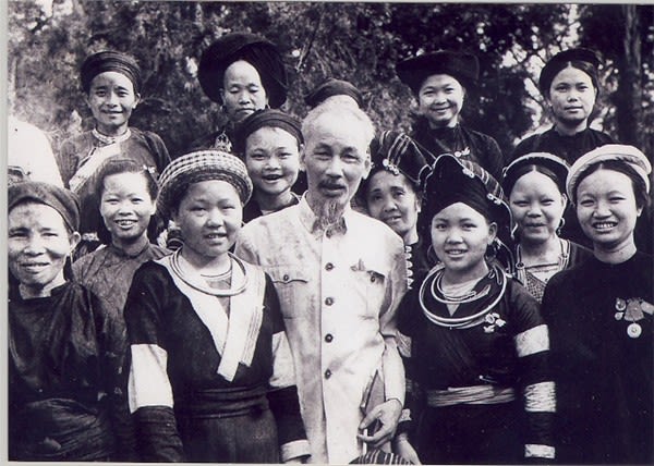 Chủ tịch Hồ Chí Minh với phụ nữ đồng bào dân tộc thiểu số.