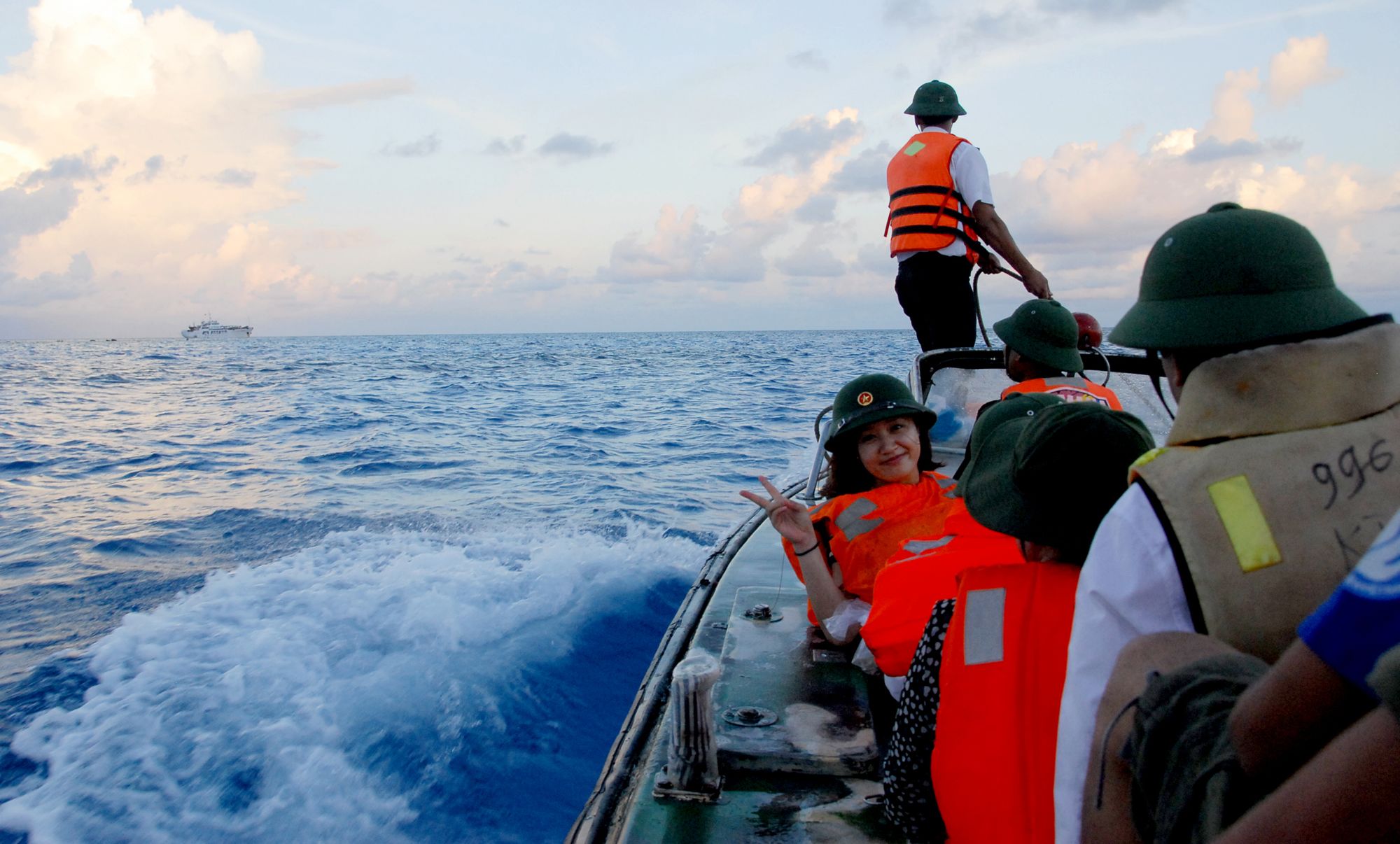 Phóng viên Thời Nay Thái Linh trong chuyến công tác Trường Sa.
