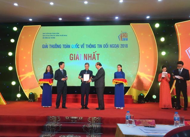 Phóng viên Nguyễn Hùng nhận giải A Giải thưởng toàn quốc về Thông tin đối ngoại năm 2018.