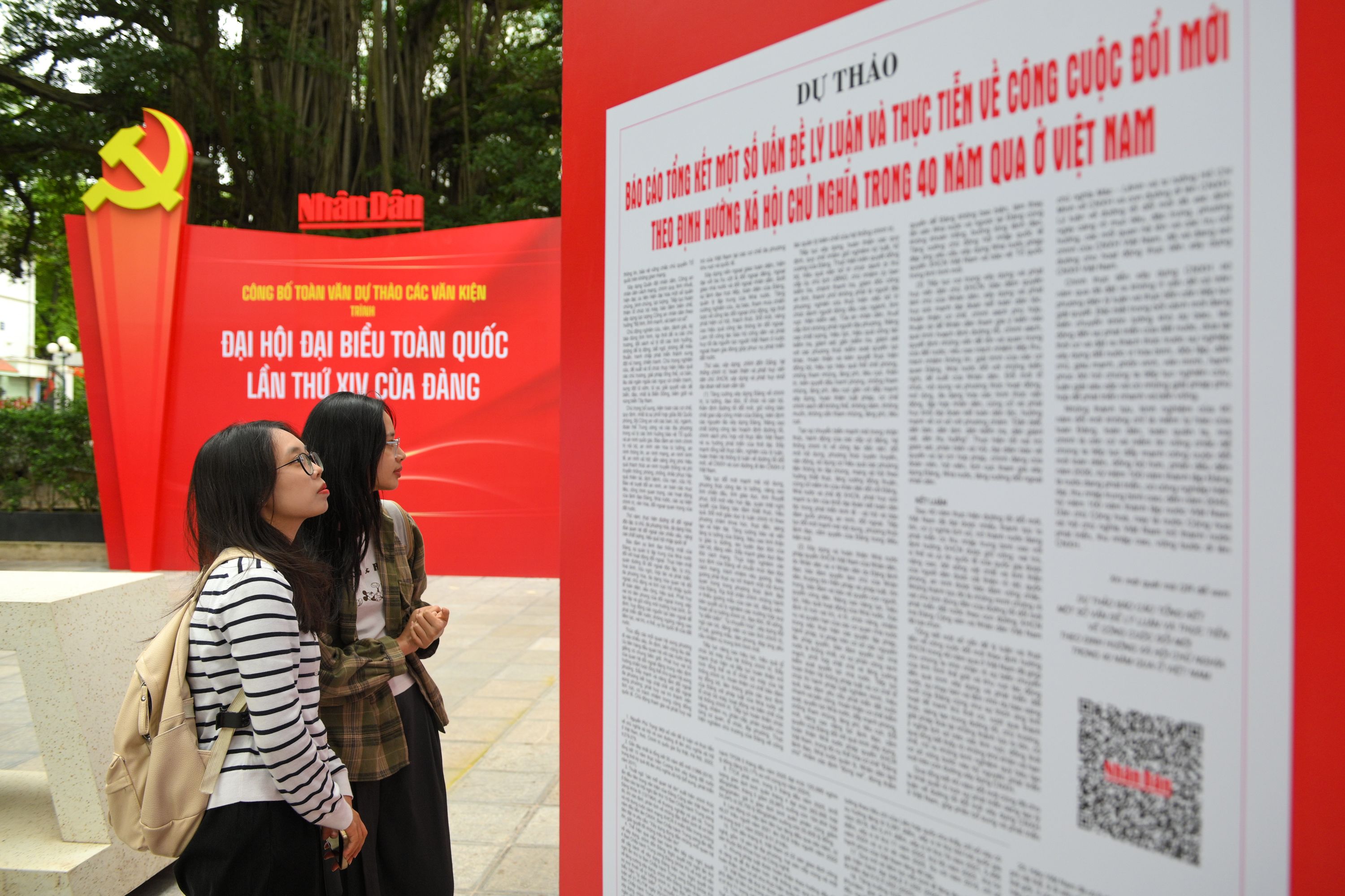 Không gian trưng bày “Toàn văn Dự thảo các văn kiện Đại hội XIV của Đảng” được đặt tại trụ sở Báo Nhân Dân, số 71 Hàng Trống (phía hồ Hoàn Kiếm). (Ảnh: Thế Đại)