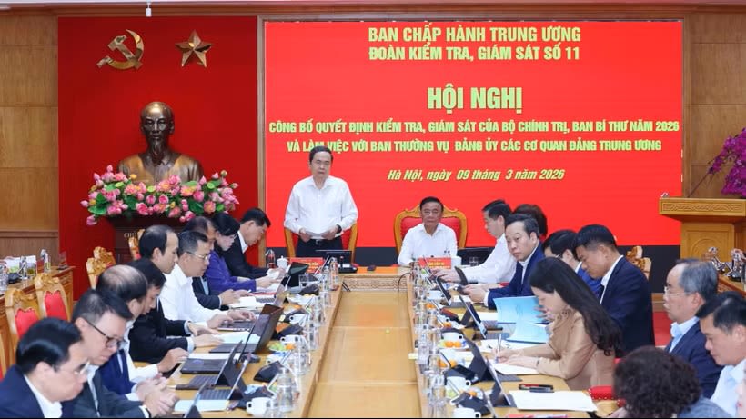 Đoàn Kiểm tra, giám sát số 11 của Bộ Chính trị, Ban Bí thư, do đồng chí Trần Thanh Mẫn, Ủy viên Bộ Chính trị, Chủ tịch Quốc hội làm Trưởng đoàn, tổ chức hội nghị triển khai Quyết định kiểm tra, giám sát năm 2026 của Bộ Chính trị, Ban Bí thư đối với Ban Thường vụ Đảng ủy các cơ quan Đảng Trung ương.