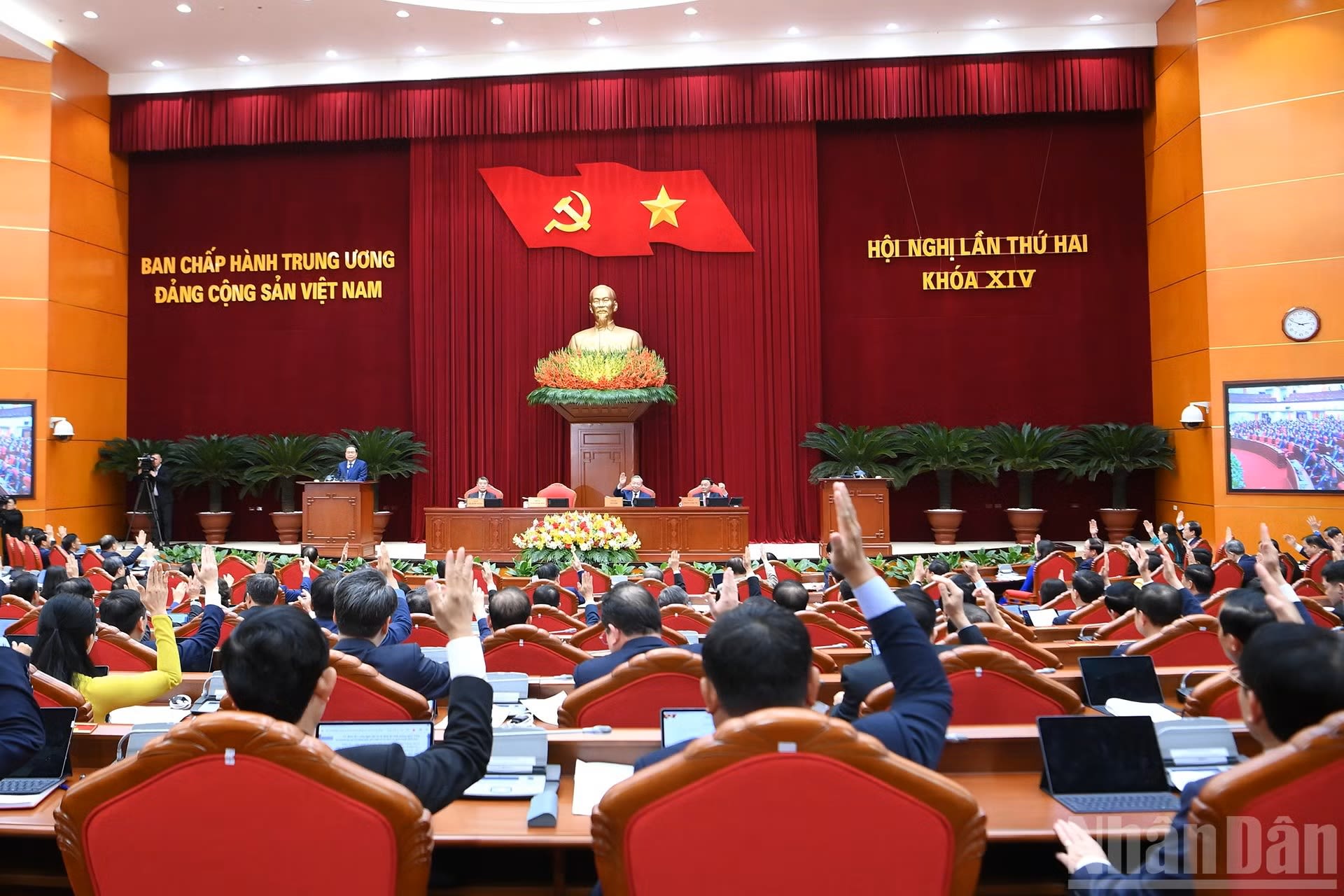 Các đại biểu biểu quyết thông qua dự thảo Nghị quyết Hội nghị Trung ương 2.