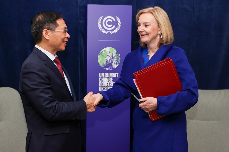Trong cuộc gặp với Bộ trưởng Ngoại giao Việt Nam Bùi Thanh Sơn ngày 1/11, Bộ trưởng Ngoại giao và Phát triển Anh Elizabeth Truss cũng đánh giá cao cam kết mạnh mẽ của Việt Nam trong ứng phó biến đổi khí hậu.