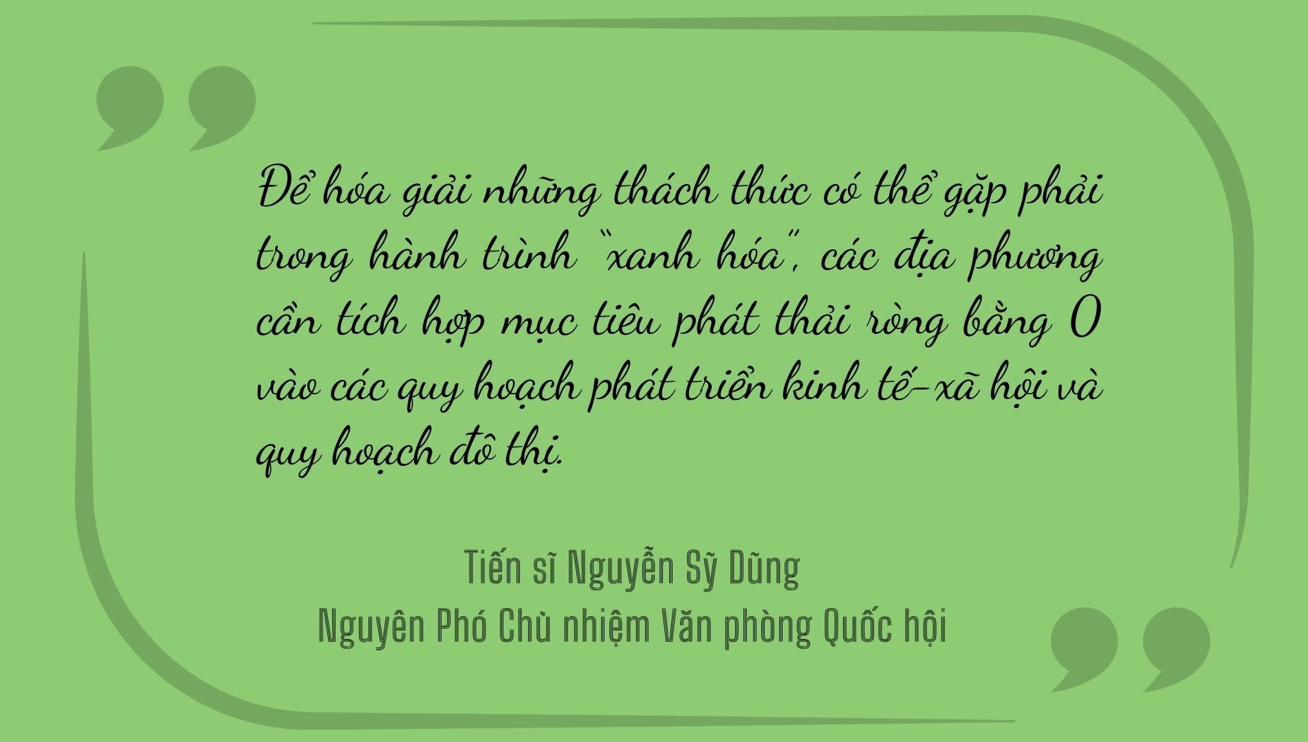 Để hóa giải những thách thức có thể gặp phải trong hành trình “xanh hóa”, Tiến sĩ Nguyễn Sỹ Dũng, nguyên Phó Chủ nhiệm Văn phòng Quốc hội cho rằng, các địa phương cần tích hợp mục tiêu phát thải ròng bằng 0 vào các quy hoạch phát triển kinh tế-xã hội và quy hoạch đô thị.